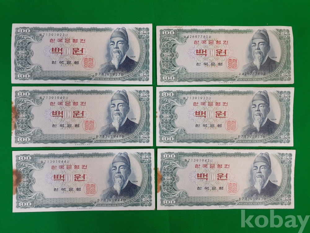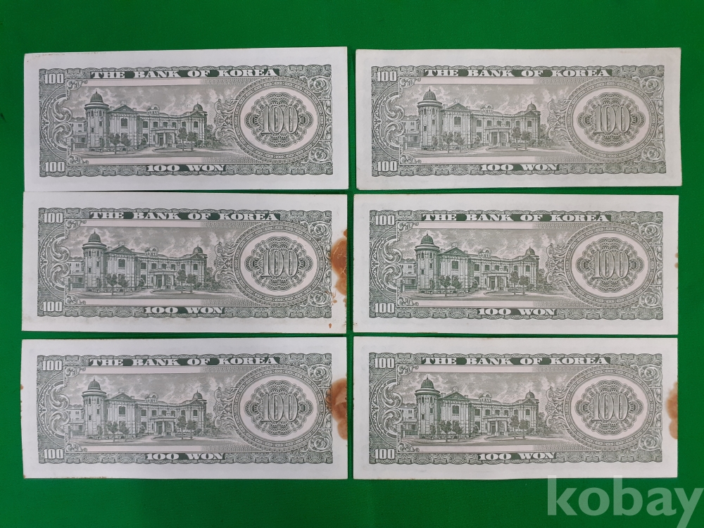 가장자리 약간의 얼룩이 있으나 상태 양호한 100원 지폐 입니다