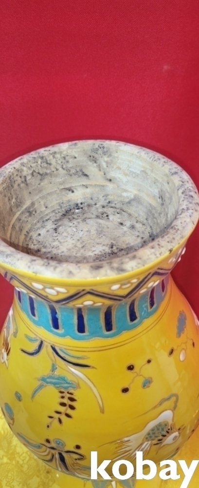 황지 연꽃 원앙새 문양 내부(內府) 양이(兩耳)화형병입니다,