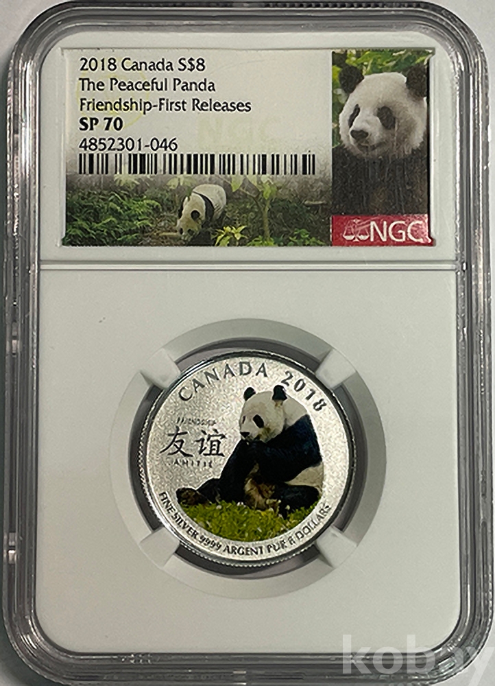 2018년 캐나다-중국 수교 기념 팬더 색채 은화 NGC 70등급