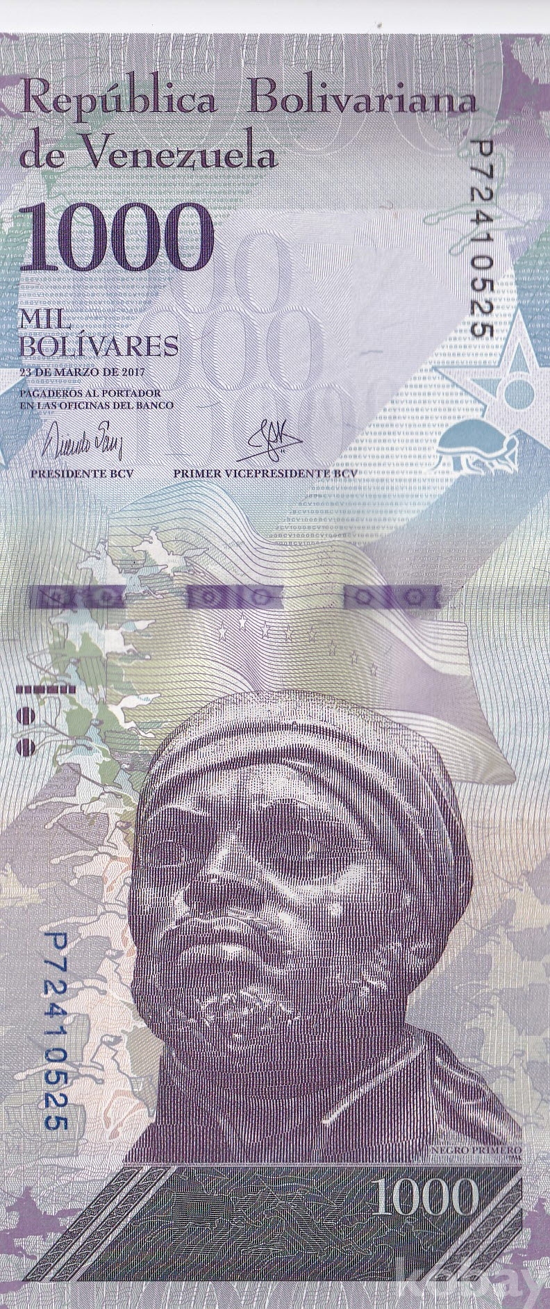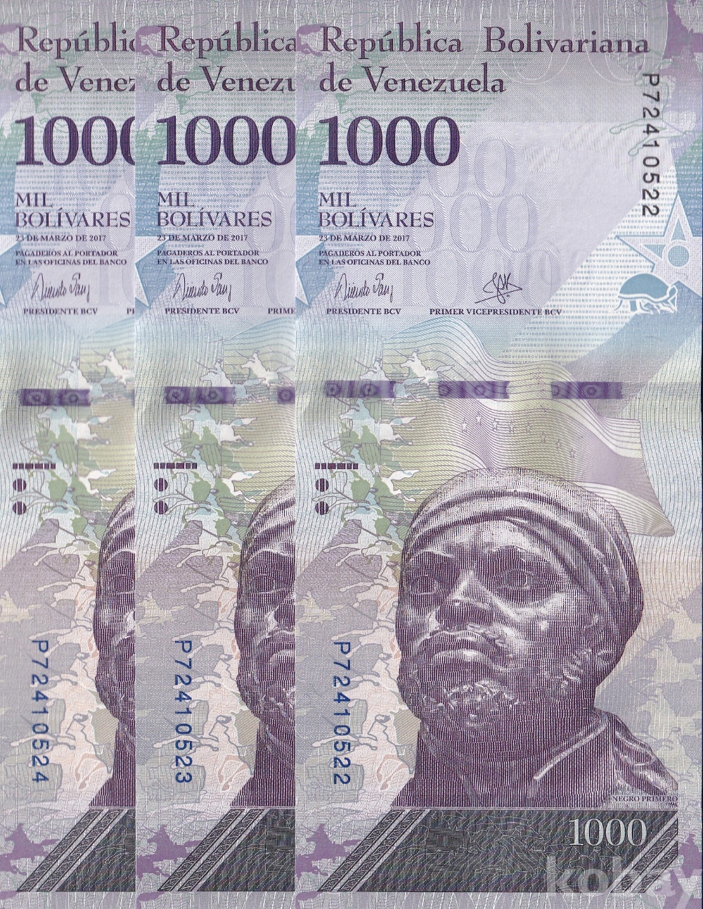 - 베네수엘라 2017년 1000 볼리바르 3연번 미사용 지폐