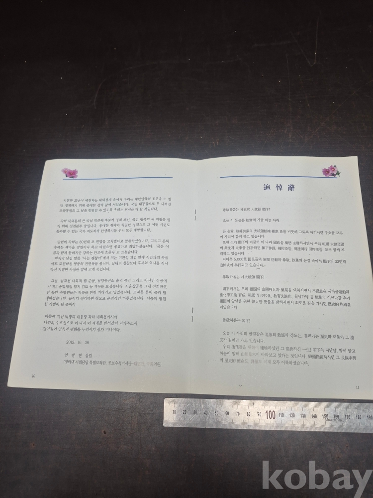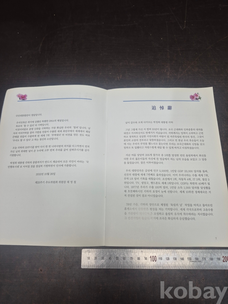 2012년 박정희 대통령 서거 33주년 추모식 팜플렛 20페이지 18.5*26*