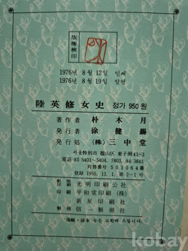1976년 발간한 산문집 『陸英修 女史』