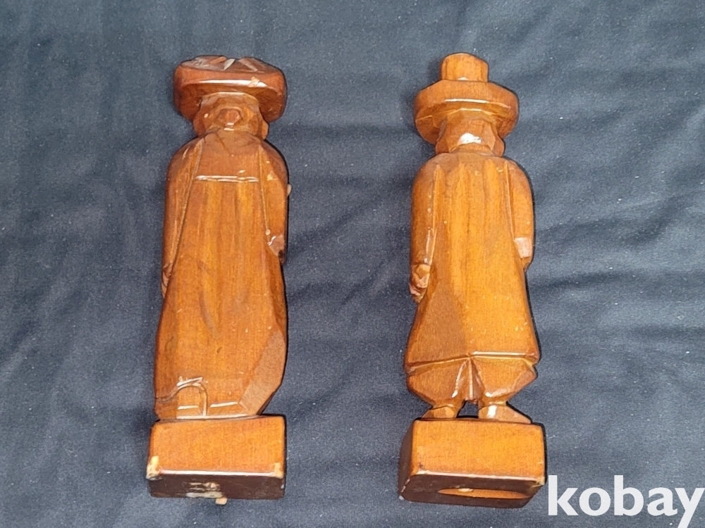 빈티지 세월 감이 느껴지는 오래된 원목 나무 노부부 조각상입니다.