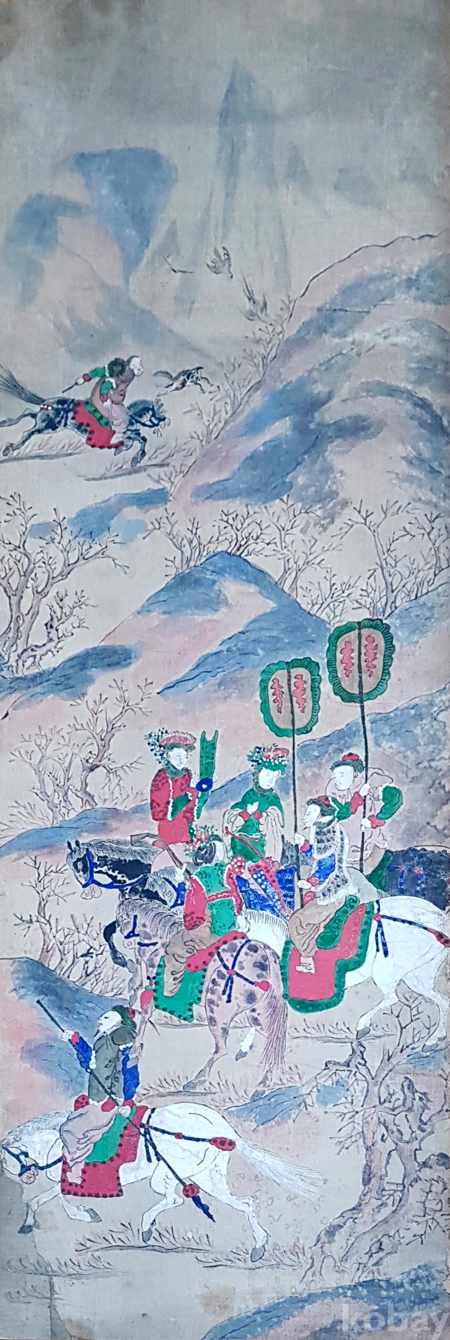 물품 크기 | 그림 크기; 38×116cm 천에 혼 당채화 |