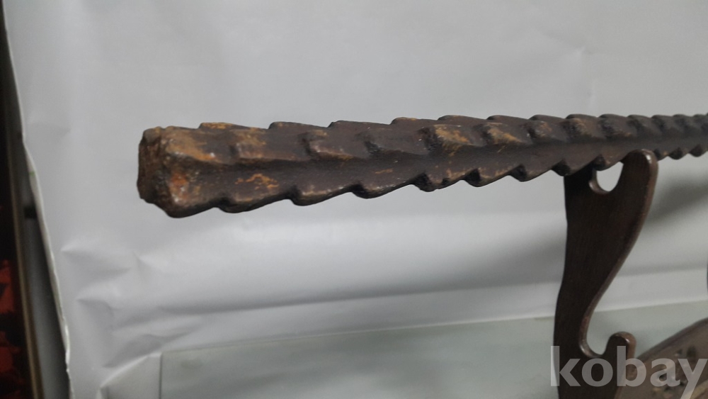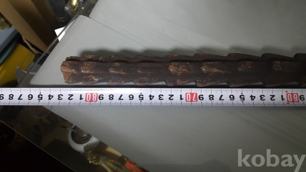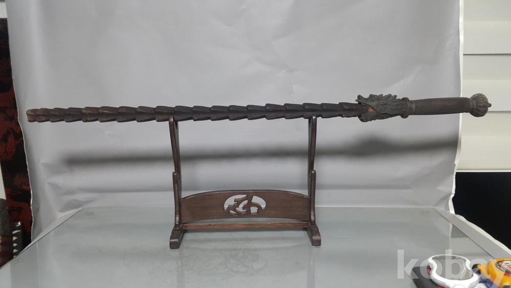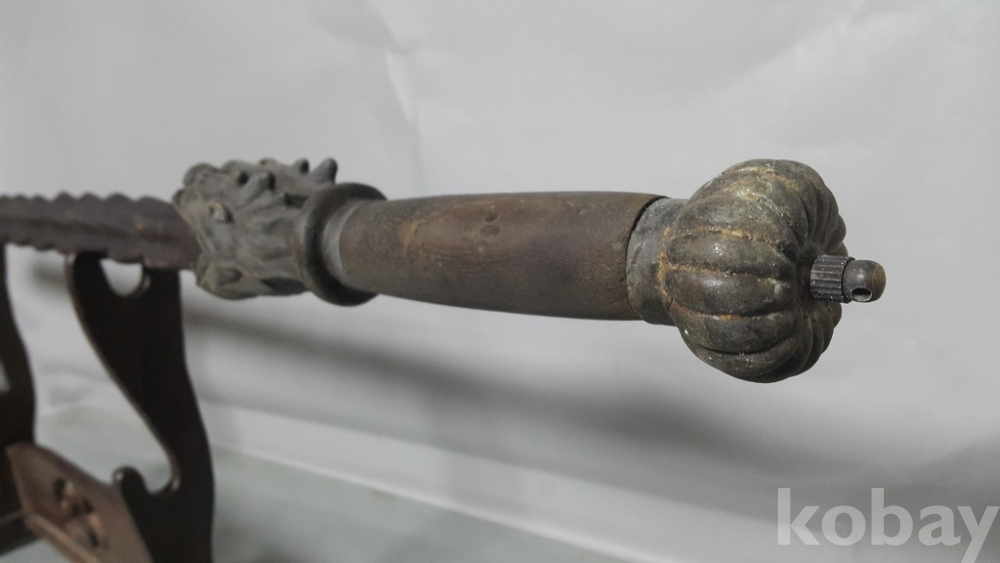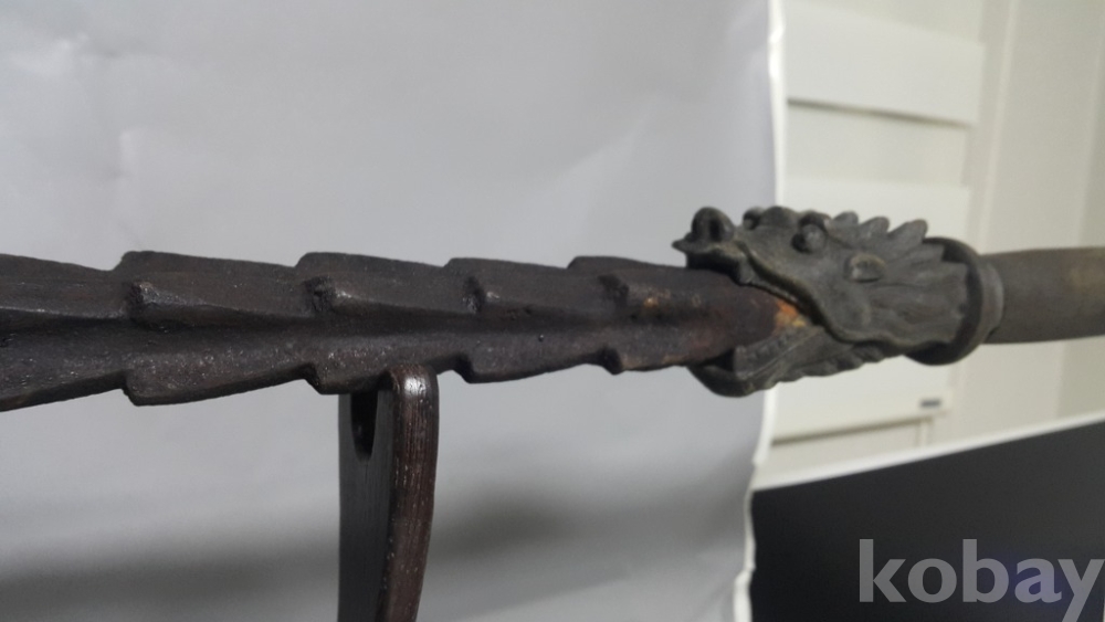 무쇠로 만들어진 병장기 혹은 무쇠 철퇴입니다 속이 꽉찬 무쇠에 용문쓰바가 인상적이고 요철이 나있는 무기입니다 그 무게만 해도 5~6킬로에 달하는 골동품입니다. 마지 삼국시대나 춘추전국시대로 회기시키듯 땟물과 세월의 연식이 한껏 느꺼집니다.