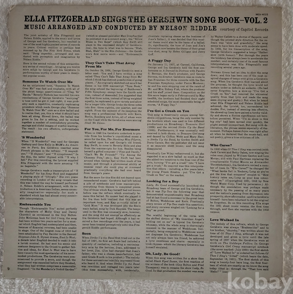 엘라 피츠제럴드가 조지 거 슈윈과 아라 거슈윈의 곡들을 부른 것 으로, 넬슨 리들이 편곡하고 지휘했습 니다.