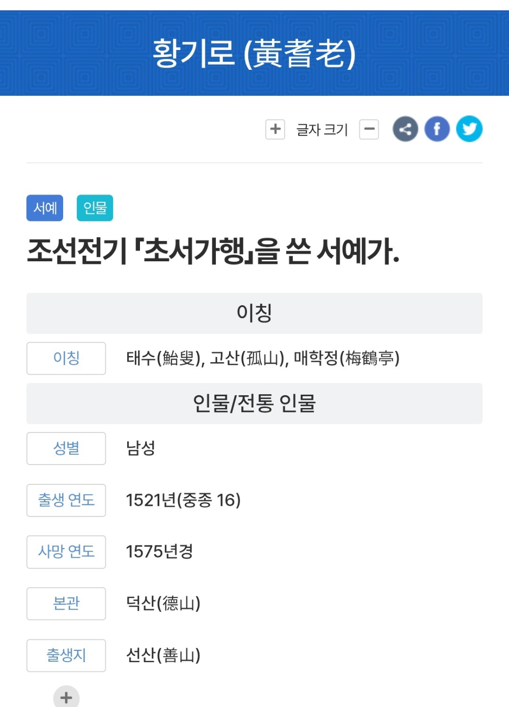 황기로는 ‘조선의 초성’이라 불릴 정도로 초서에는 그를 따라갈 자가없었다고 한다