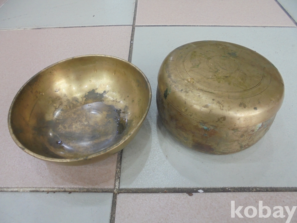 옛날 부잣집이래야 사용한 작은유기 합식기는 귀한것으로 녹난건 딲으면 깨끗이되는 작은제치 놋유기 합식기 1벌