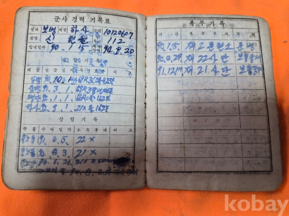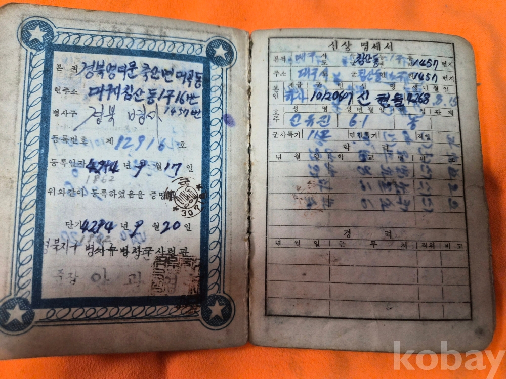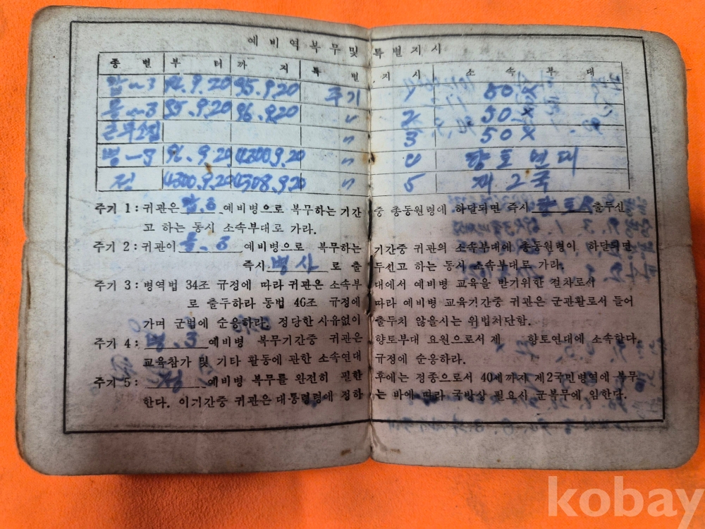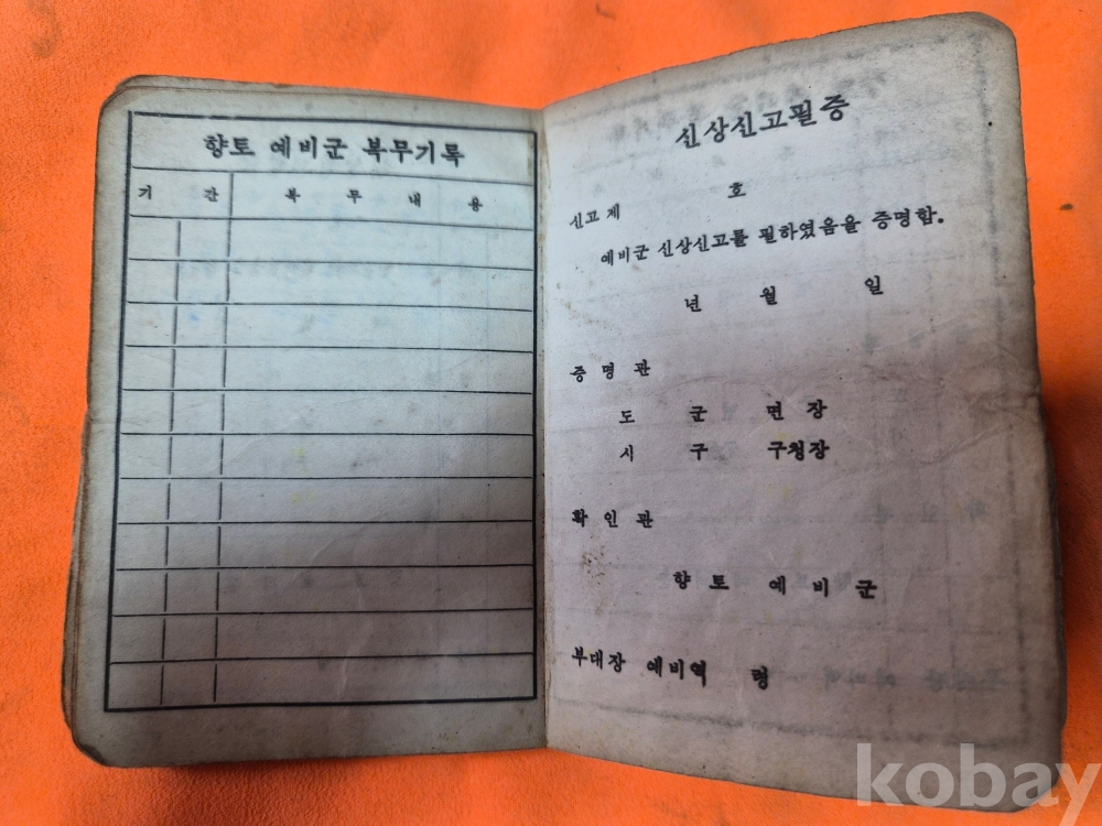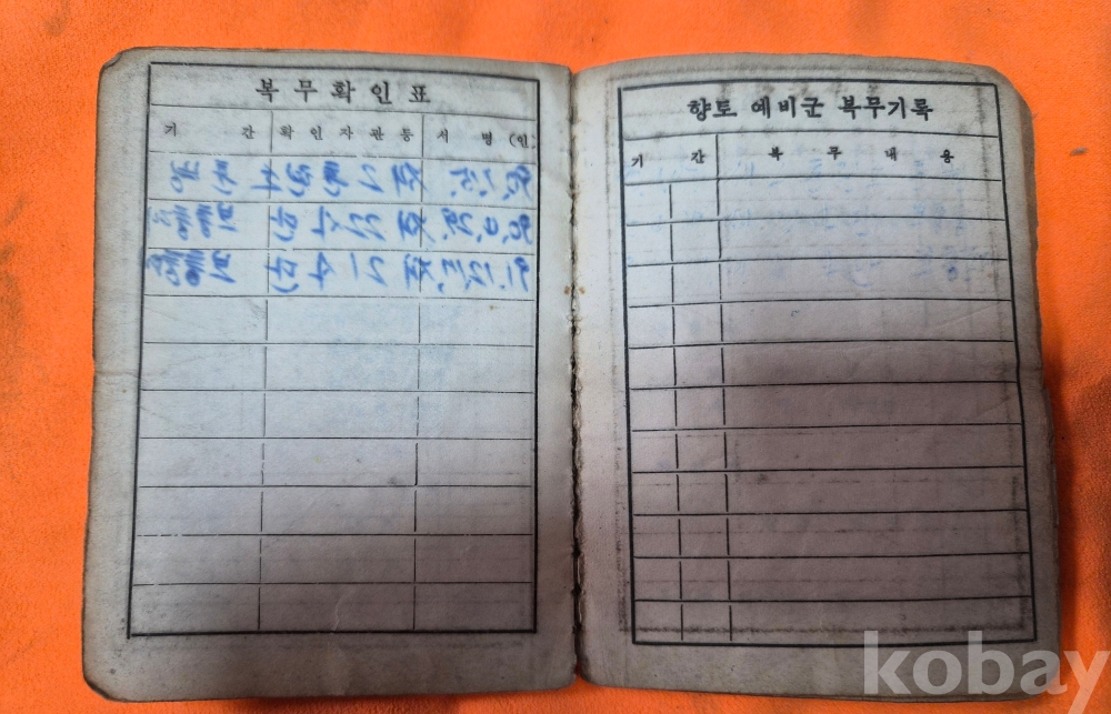 오래된 예비군 수첩,군자료,훈장,국군,기장,레트로,근현대사
