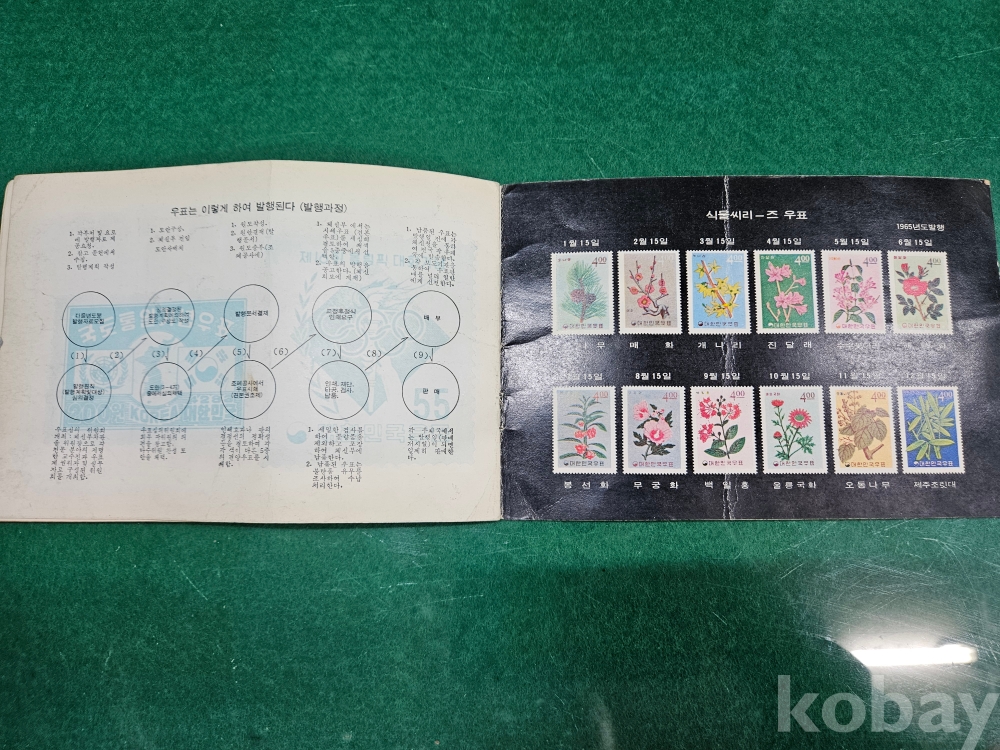 첫장 꿀벌과 복주머니니는 발행당시 견본으로 첩부해서 나온것이며