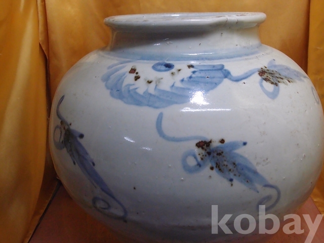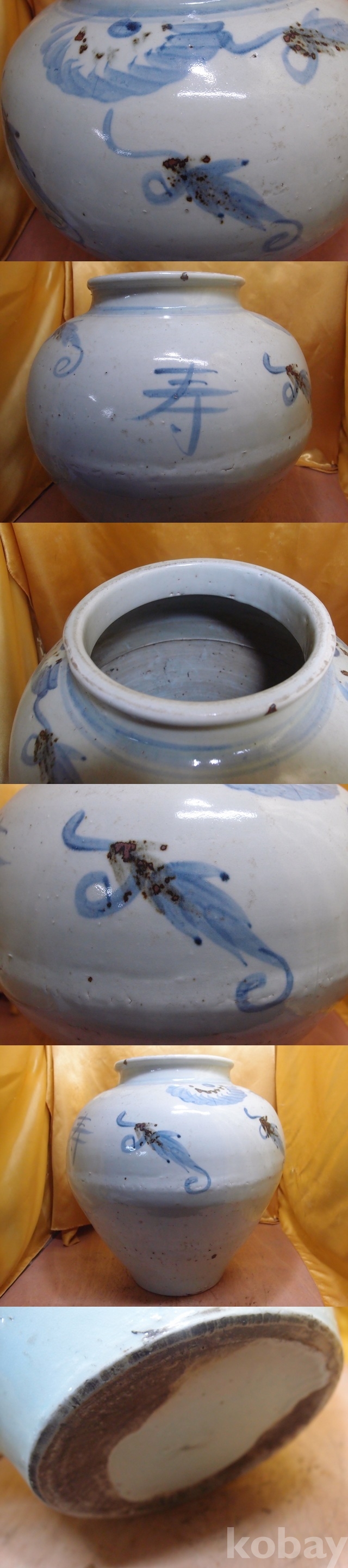 가-43.오래된 대형 글자문양이있는철사청화 백자.