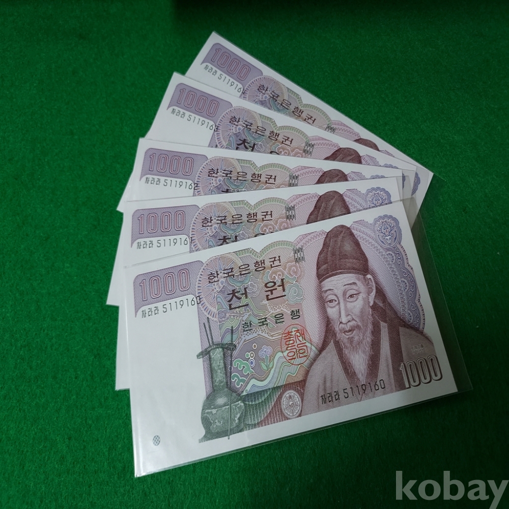 한국은행 2차1000원 5매 양성기호