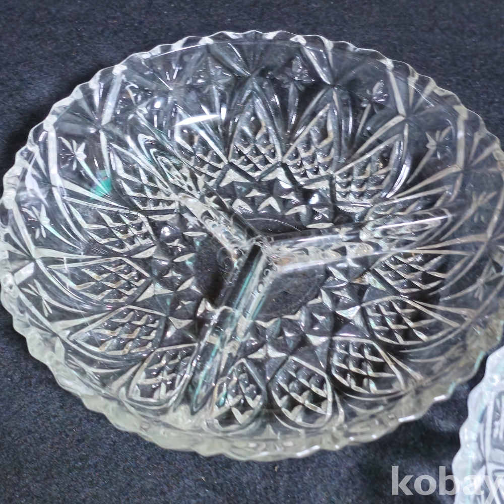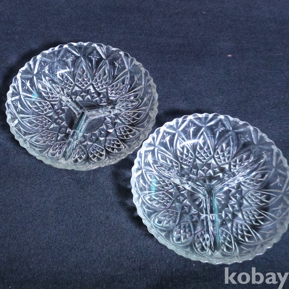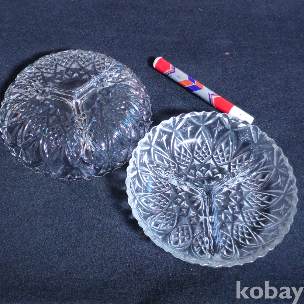 (((근현대사자료))) 1980년대 조각이 이쁘고 두터운 유리 다과 (안주) 접시 (2개)