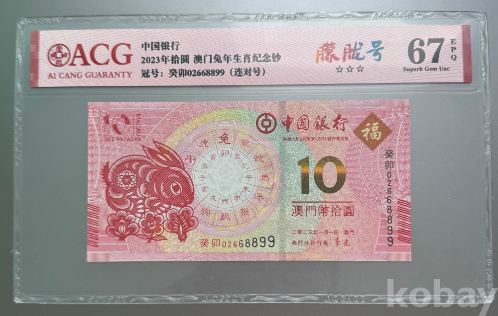 중국은행 2023년 토끼해 기념권 ACG 67 EPQ
