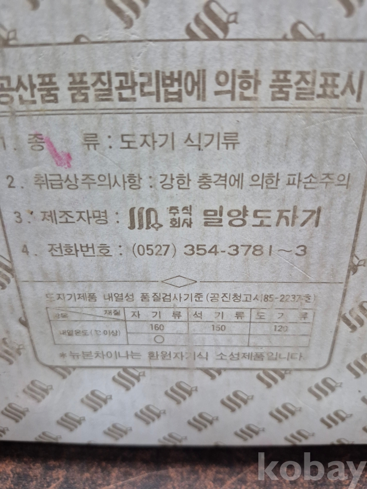 1980년대 밀양 본차이나 대접 그릇 2인세트 미사용품 밀양도자기 33*17*15