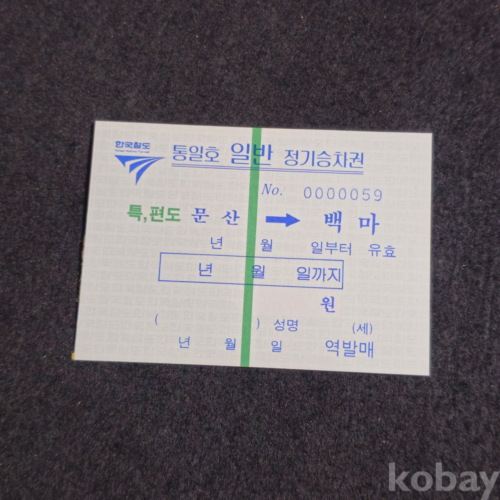 (천원경매) (((철도자료))) 오래전 한국철도 통일호 일반 정기승차권 (특,편도 문산-백마)