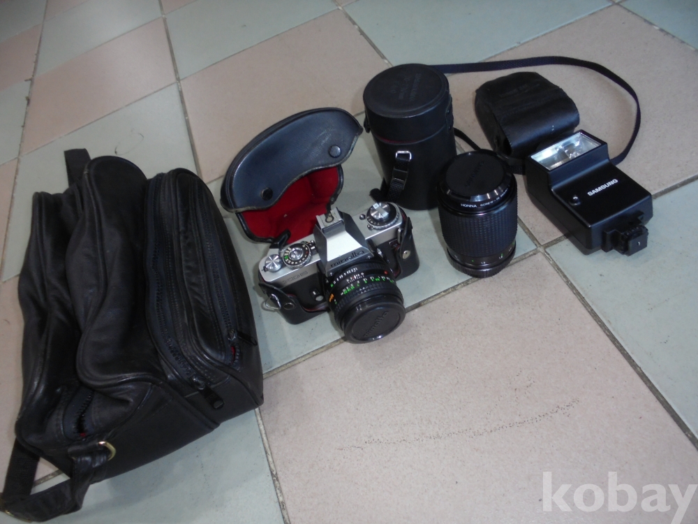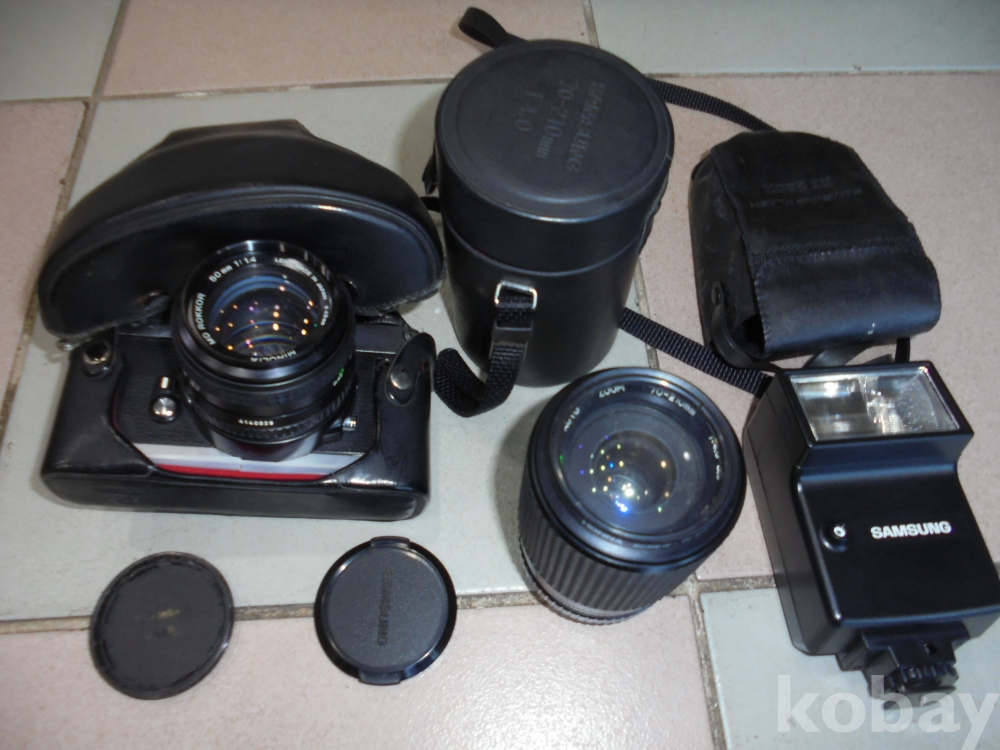 사용거의안한 새것으로 미놀타 기본1.4 고급필림카메라와 기종에 맞는 210미리 망원렌스 어두운데찍는 후라시외 가방