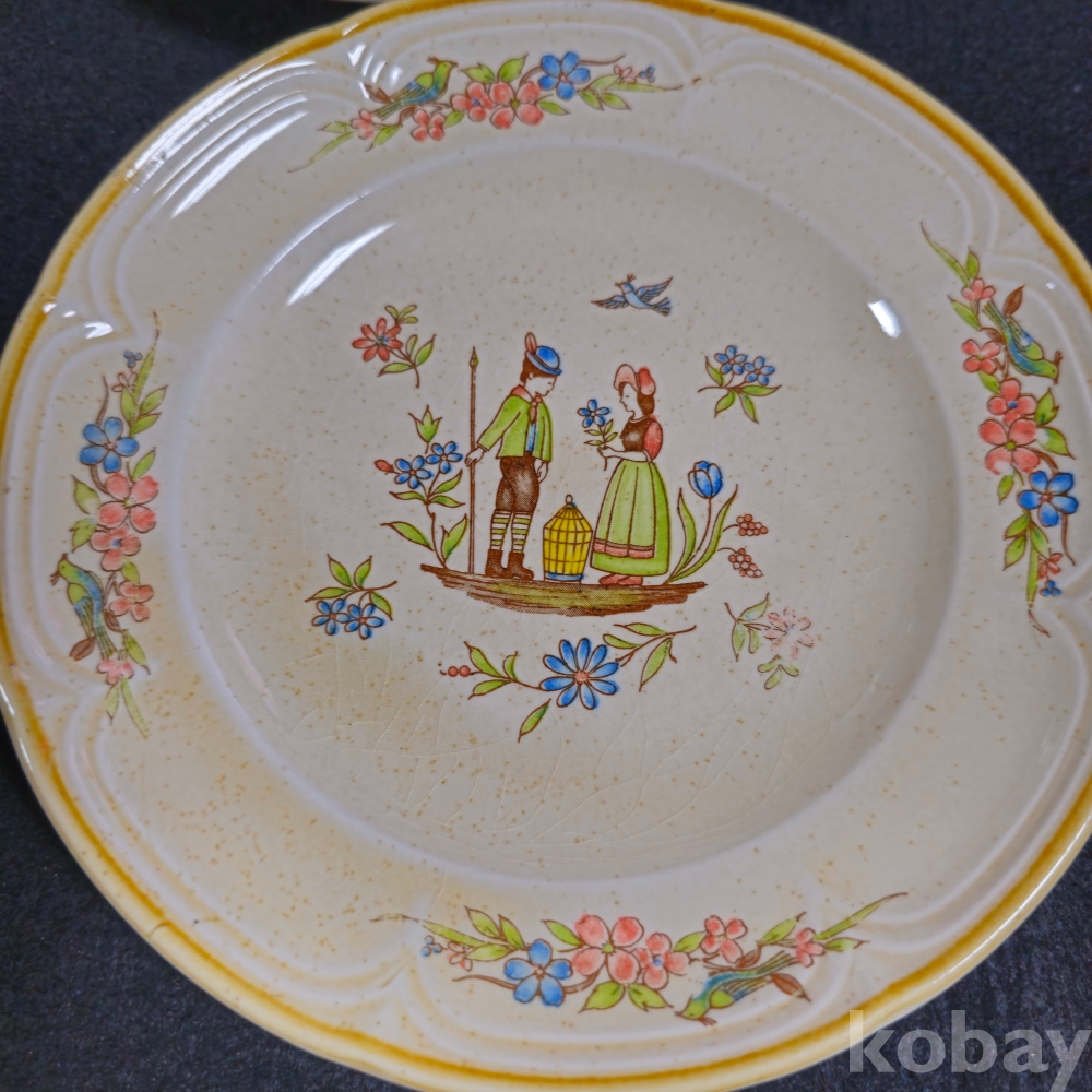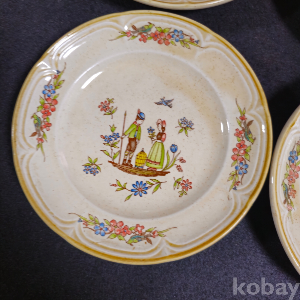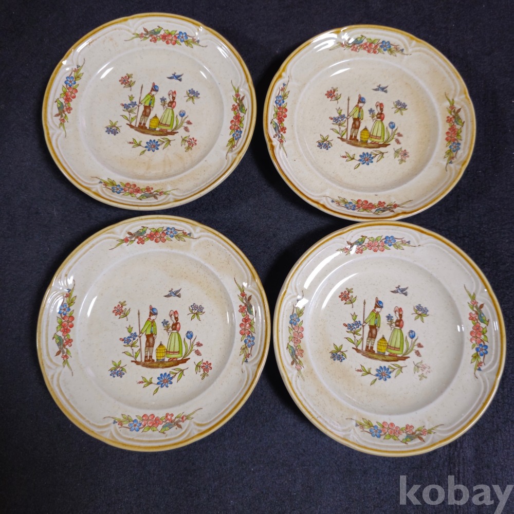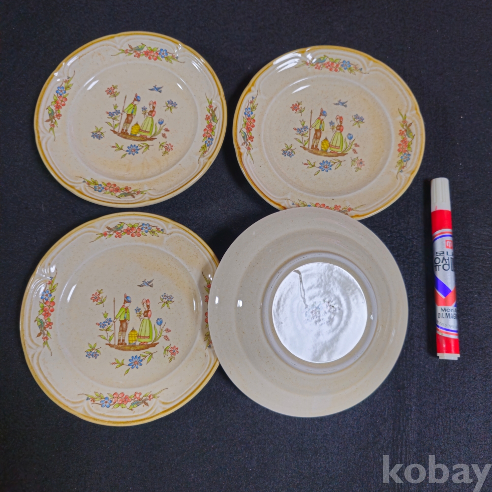 (천원경매) (((도자기접시))) 오래전 일본에서만든 이쁜 동화같은그림이있는 도자기 접시 4개