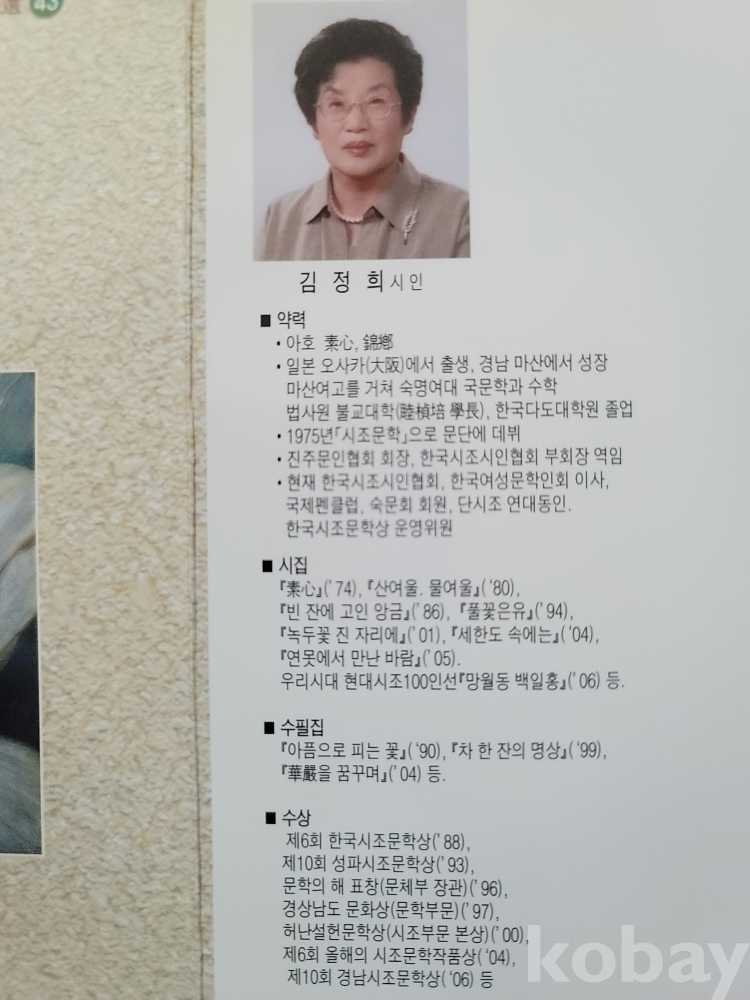 김정희(일본 오사카[大阪]: 1934) 시조집.
