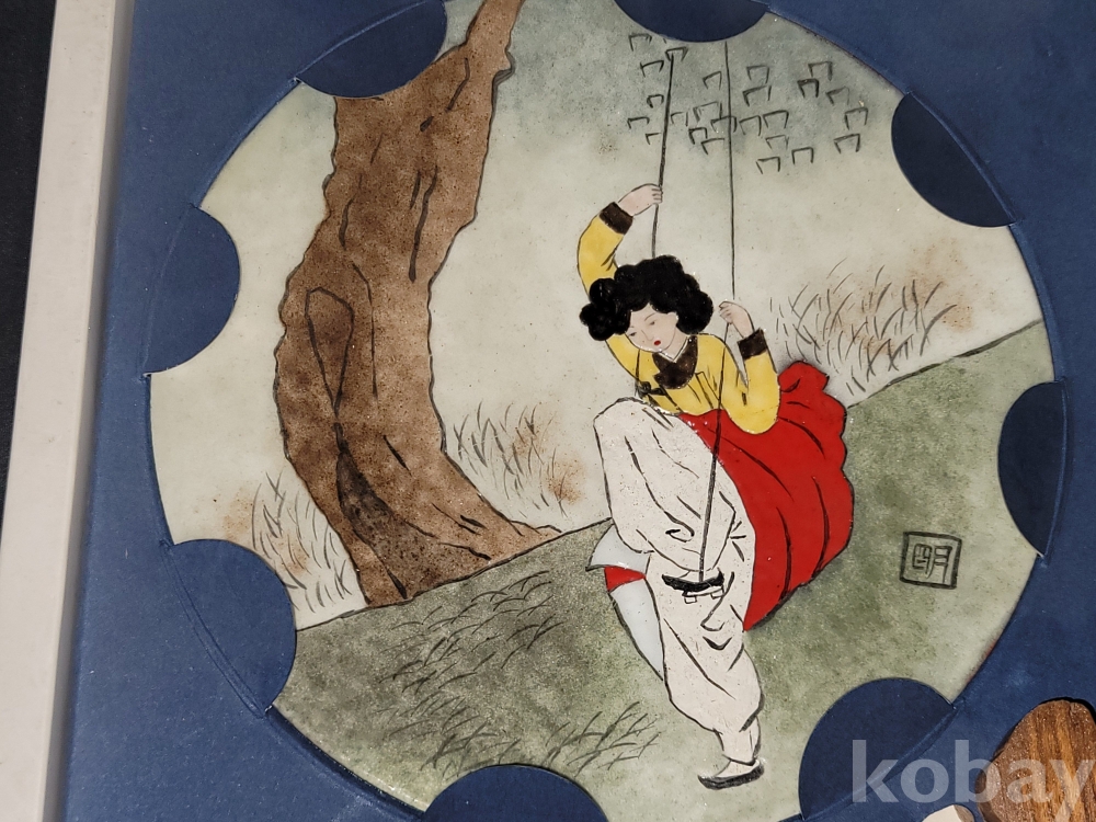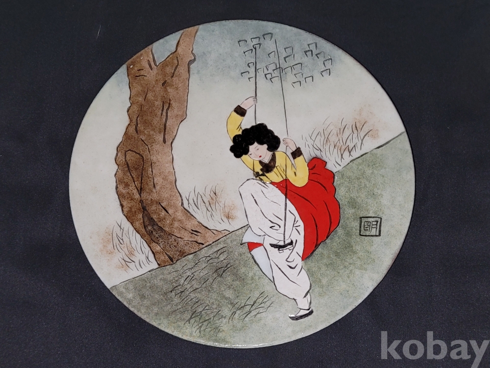 빈티지 혜원 신윤복 그네 그림 칠보 접시 도자기 공예품입니다.