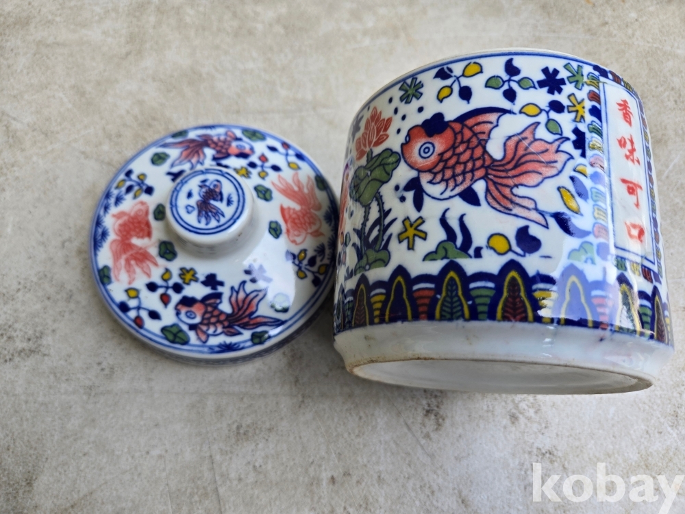 물고기 문양 찻통 도자기 입니다.