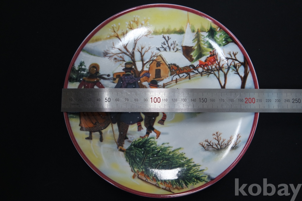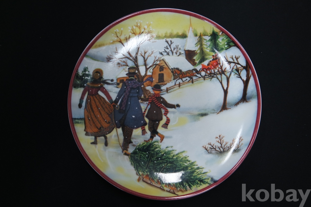 한정판 접시 / 크리스마스 시즌 트리용 나무를 끌고 가는 가족 / 수제 핸드페인트 / 251001-1-13