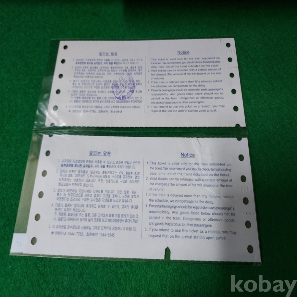 한국철도 특별용지승차권 2매 새마을,무궁화, 사용제