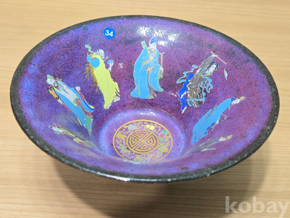 8명의 인물 표현이 있는 다완 도자기 입니다.