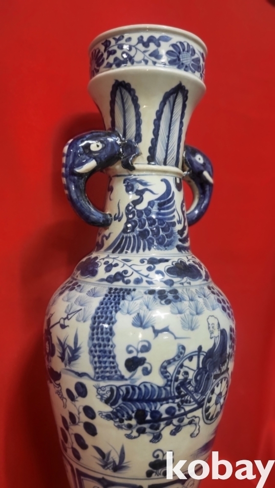 양귀는 코끼리이며 목선에 봉황이 날개짖하는 도안이 있읍니다,