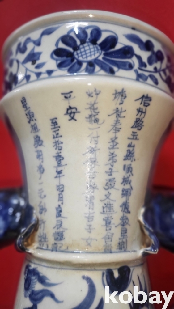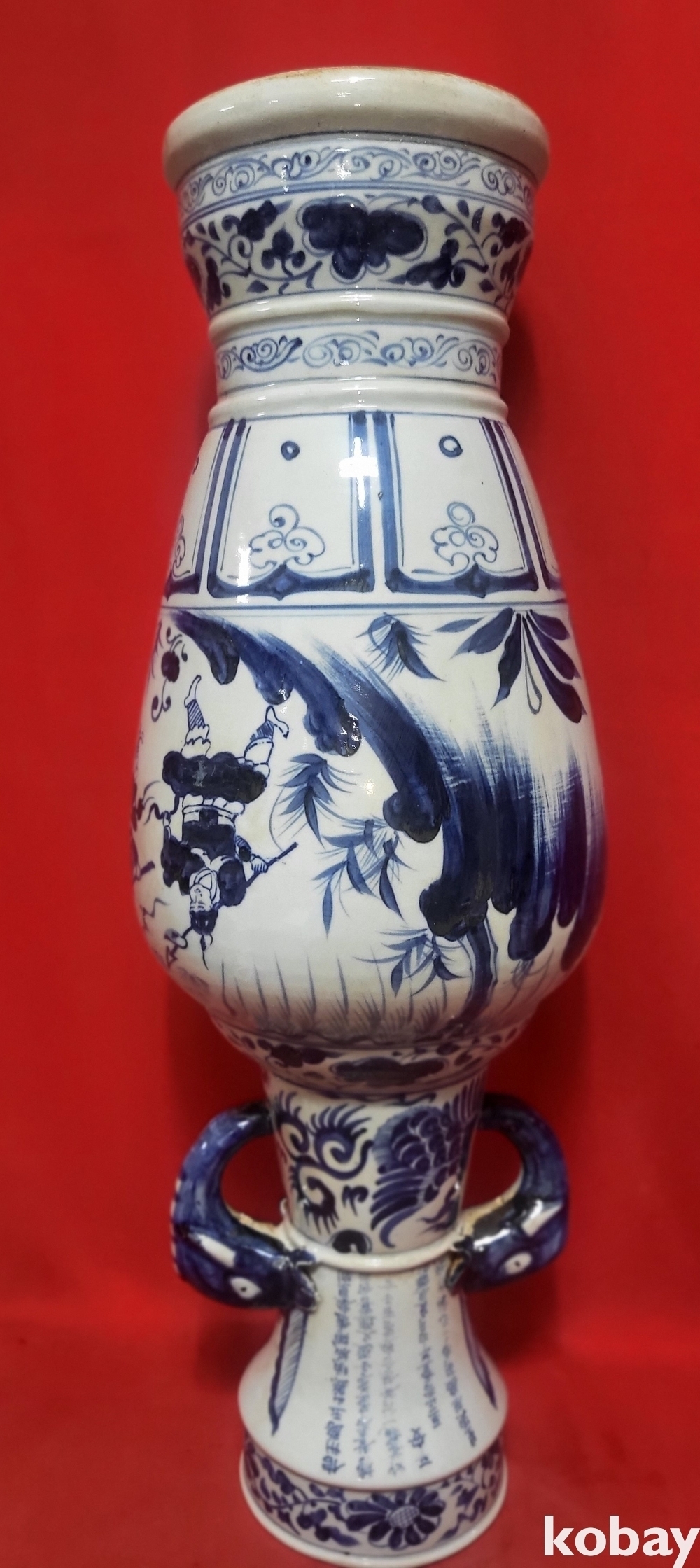 옹정11년 관지 목선에 보이는 귀곡자하산도 문양 상이(象耳) 대준(大樽)입니다,