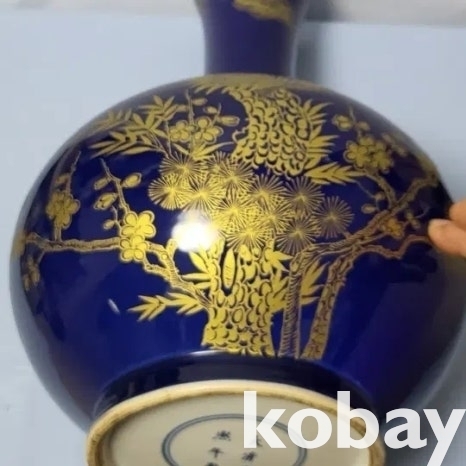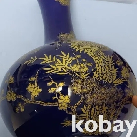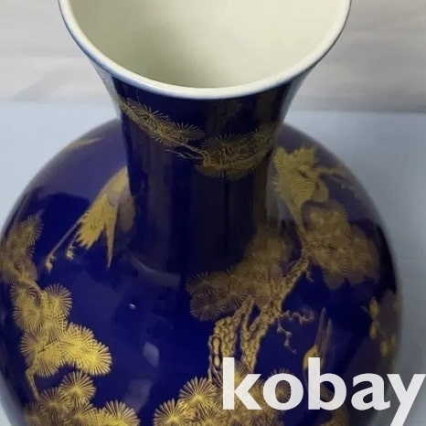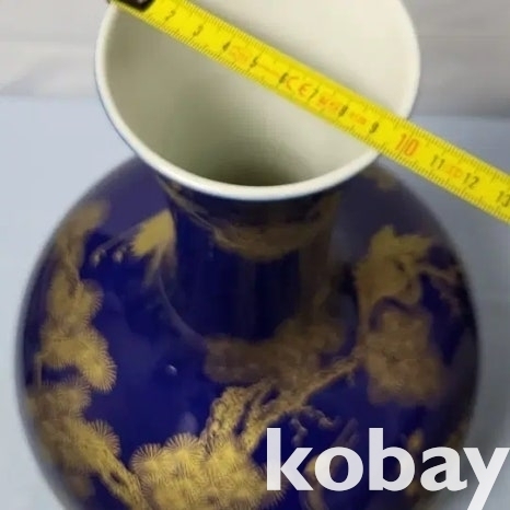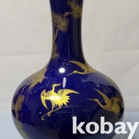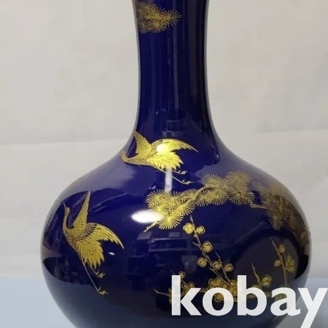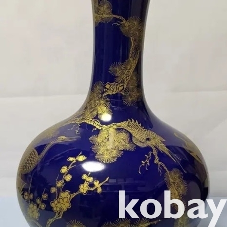 금분 칠로 송학 문양을 표현한 남유 도자기 입니다.