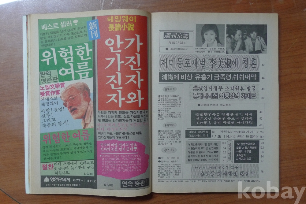 1985년 주간경향 잡지 - 표지모델 탤랜트 김미숙 -
