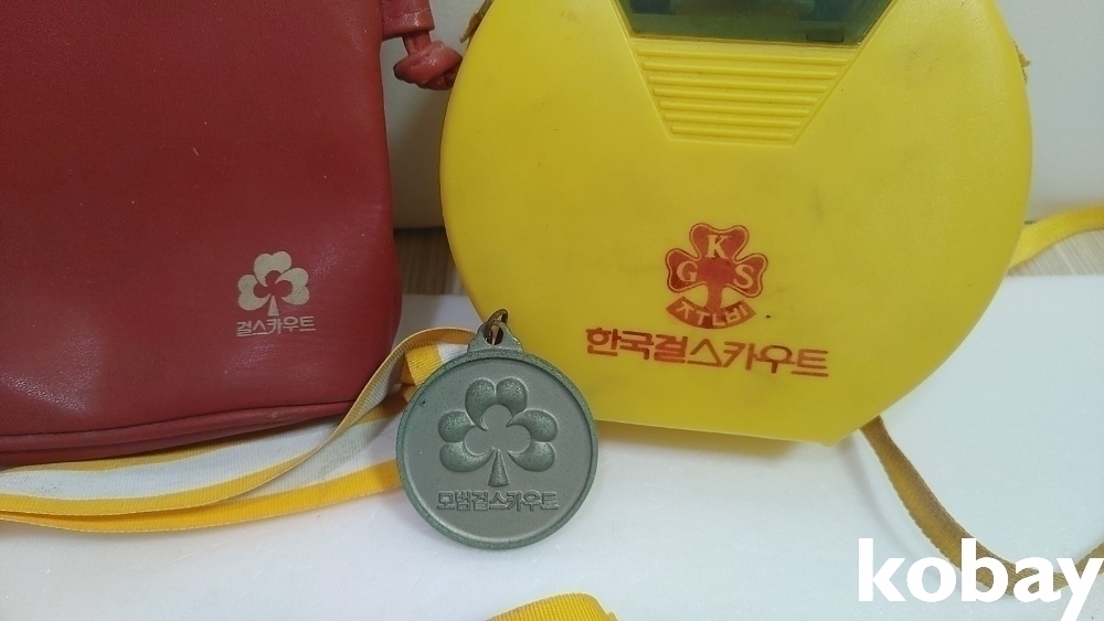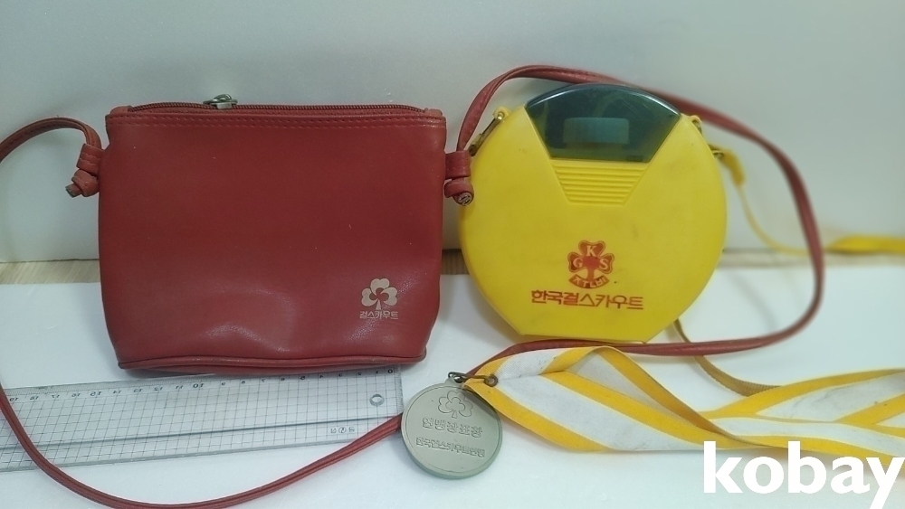 70~80년대 걸스카우트 용품 3종입니다 메달 가방 물통