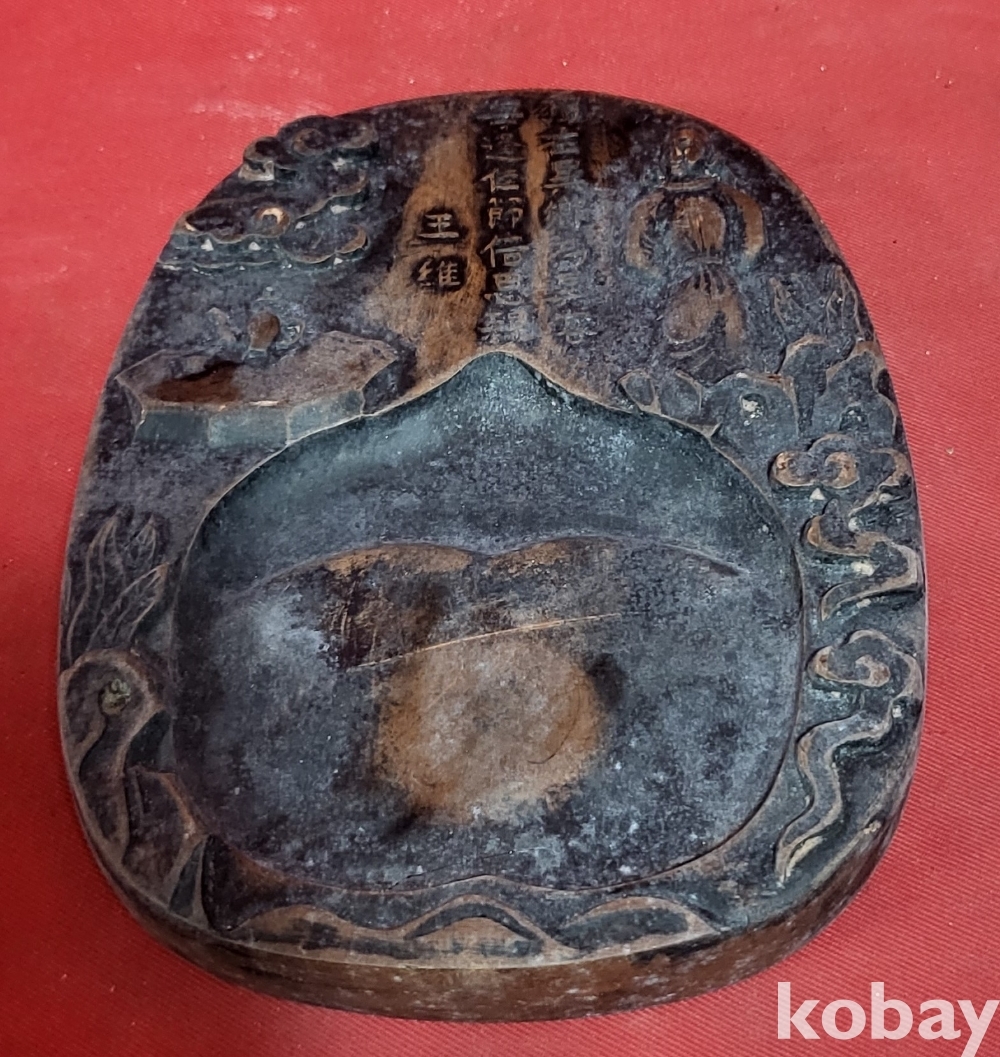 벼루 상단에는 우측에는 왕유(王維) 인물이 있으며 중앙에는 왕유(王維)의 시(詩