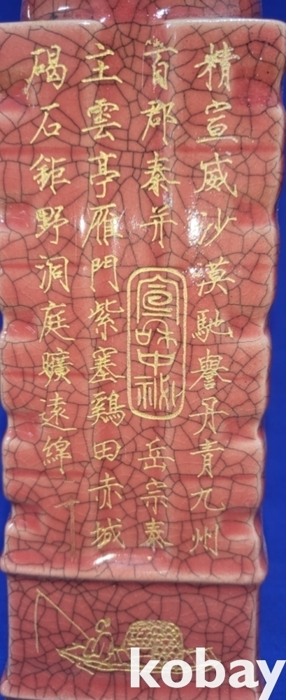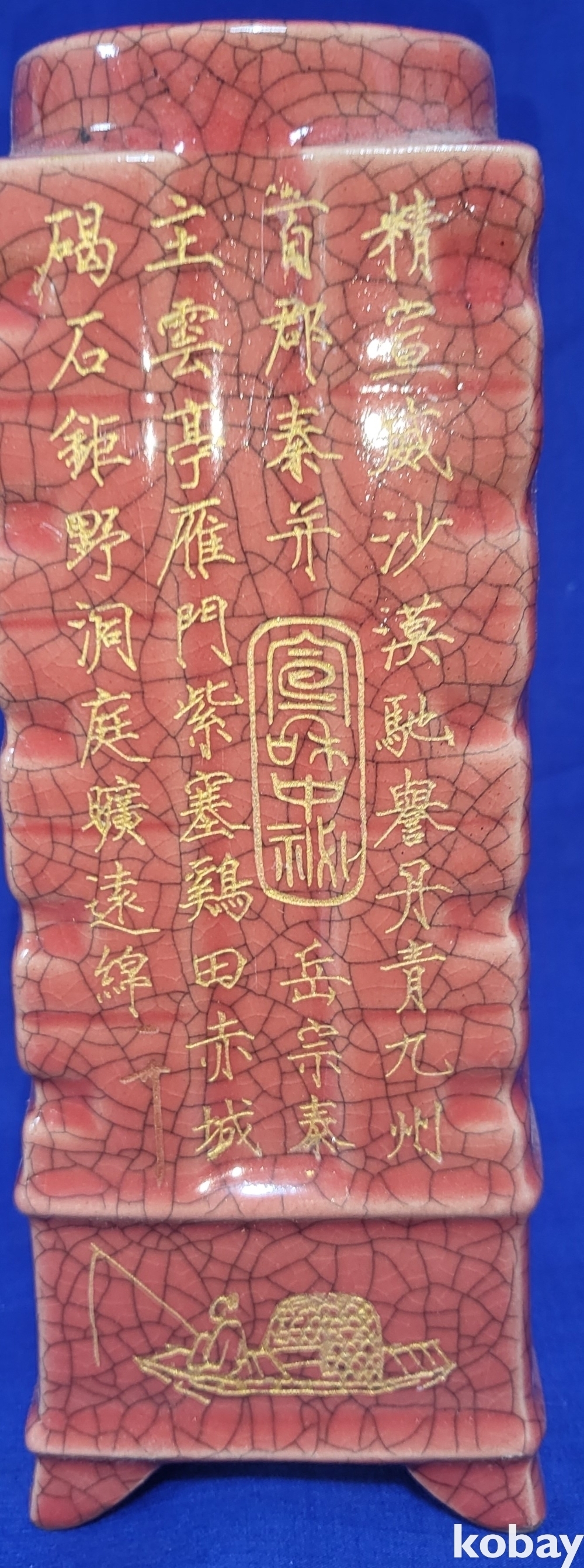 시문구와 낙시 그림은 음각으로 파앤 후 그 위에 금채로 채색된 기물입니다,