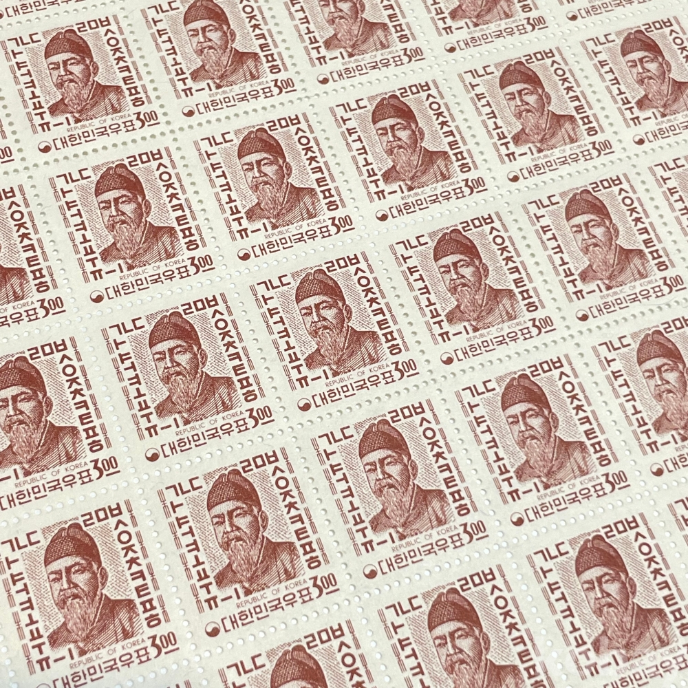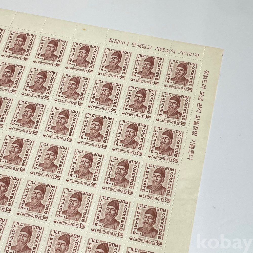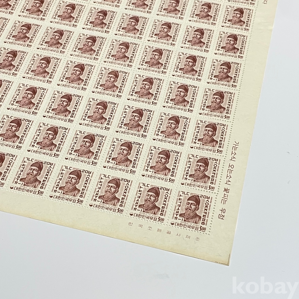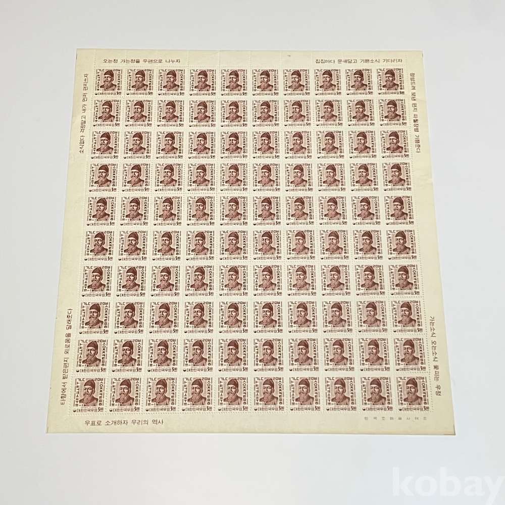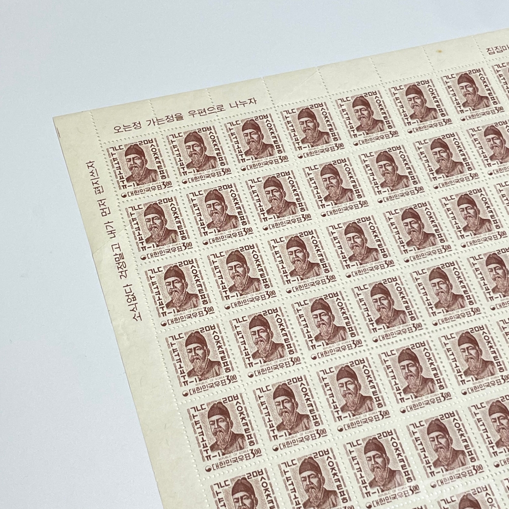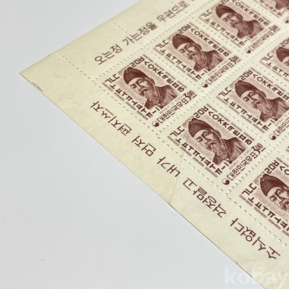 [전지] 1966년, 제2차 국산백지보통 세종대왕 100매 전지