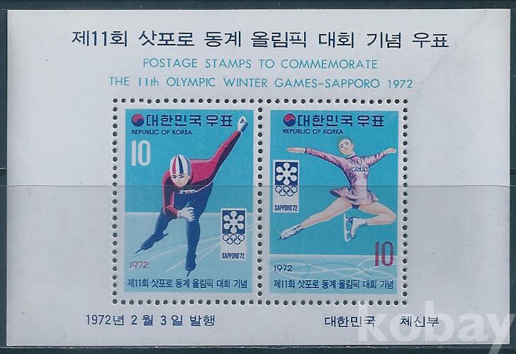 (한국시트-620)1972년11회삿포로동계올림픽시트(미사용제)-MNH, VF