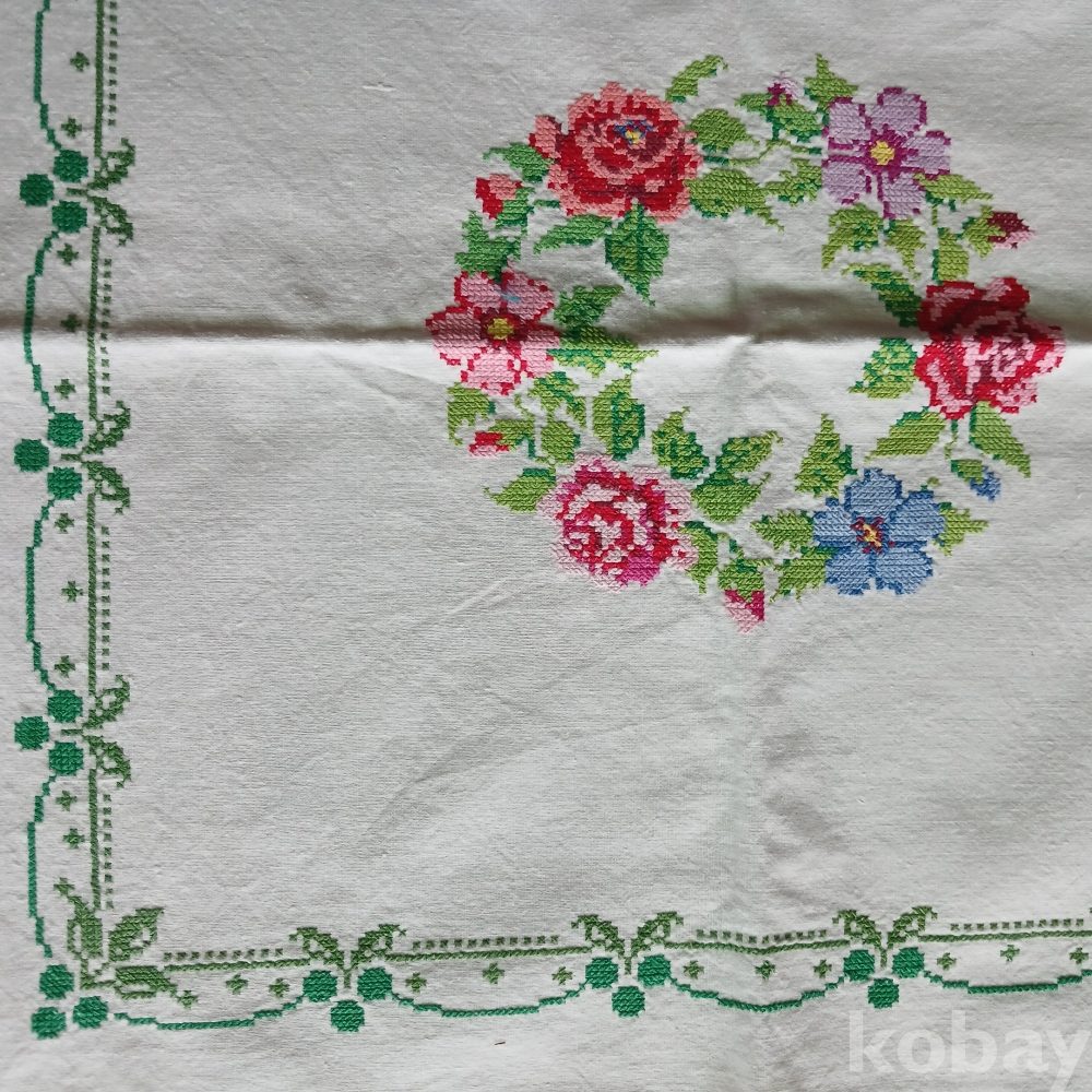 근대 십자수예 자수 상덥개 덮보 손수 실사용가능 튼실상태 섬유공예