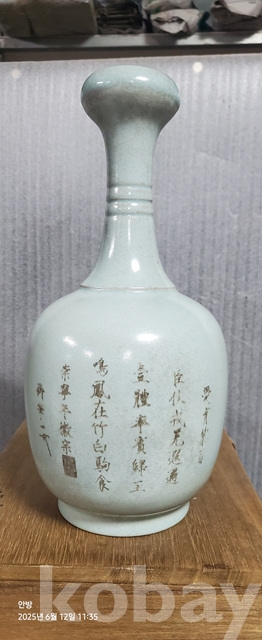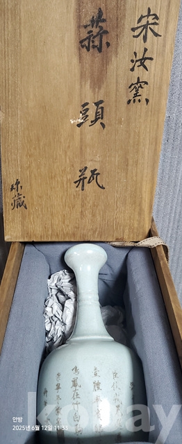 f-46.고급오동상자에등 오래된 5대도자기글자문 여요주병