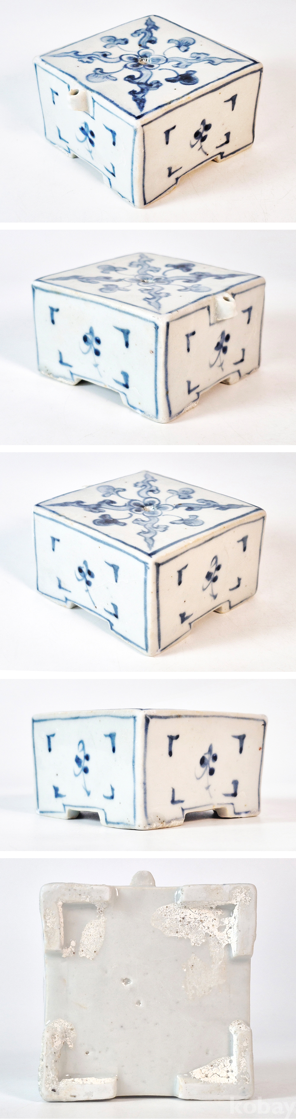 * 고급 분원 조선백자청화보상화문사각연적(朝鮮白磁靑華寶相華紋四角硯滴) *
