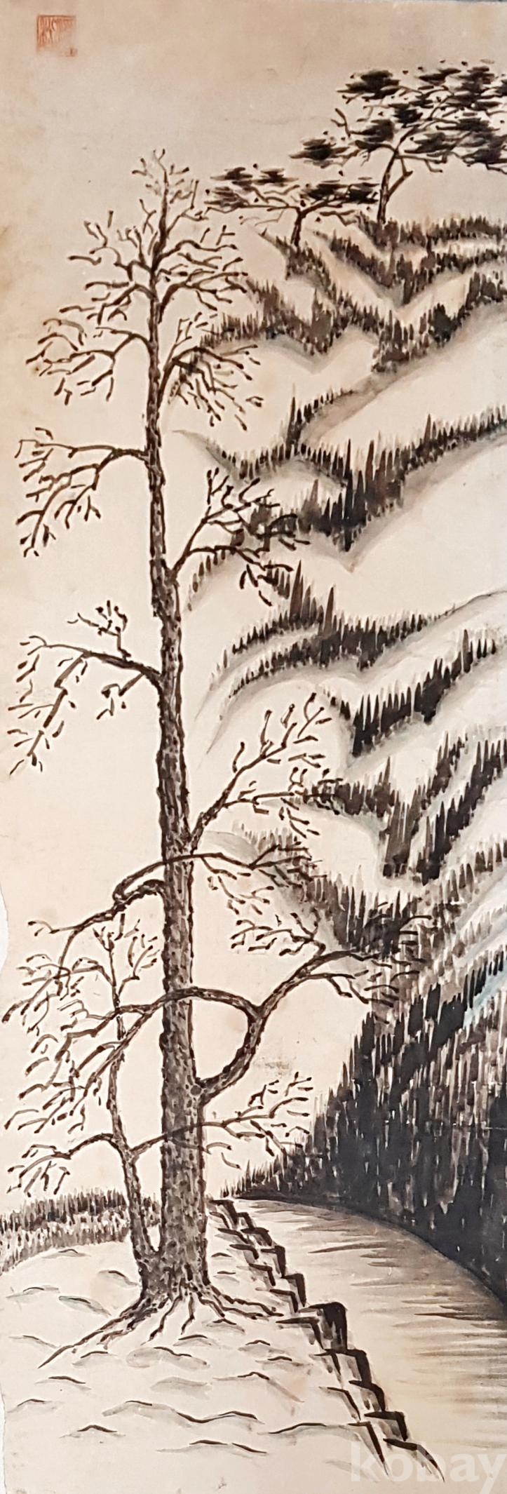 물품 크기 | 그림 크기; 88×30cm 당지에 수묵화 |
