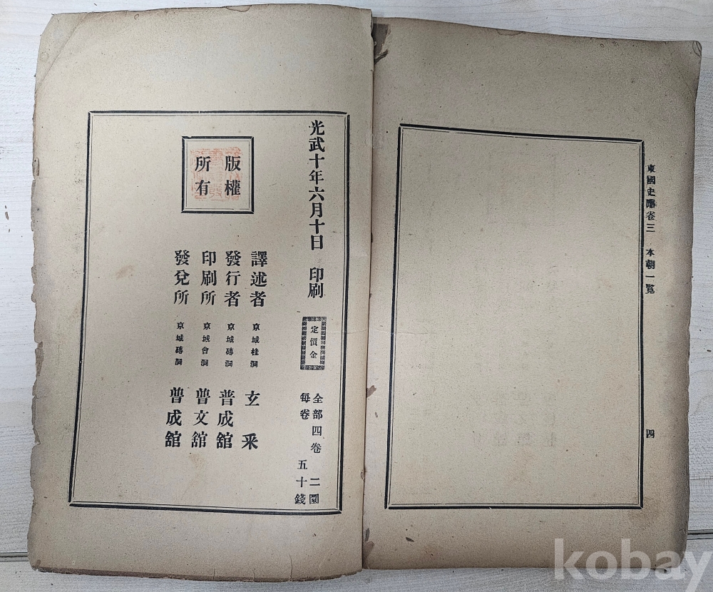 상태:양호 (권3~4이 내용손상 없으나 책펴는면이 일부닳았고,권4 뒷표지는 보수한것임