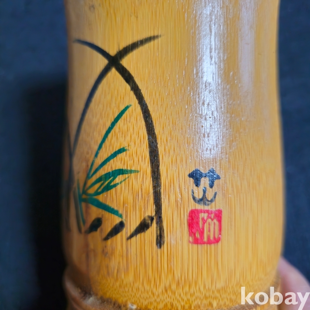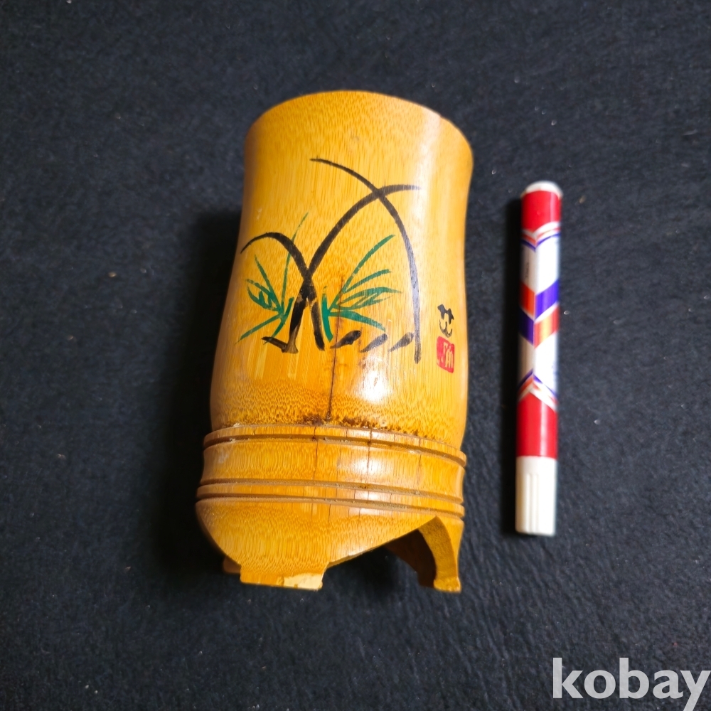 (((대나무붓통))) 사군자중 蘭그림있는 대나무 붓통