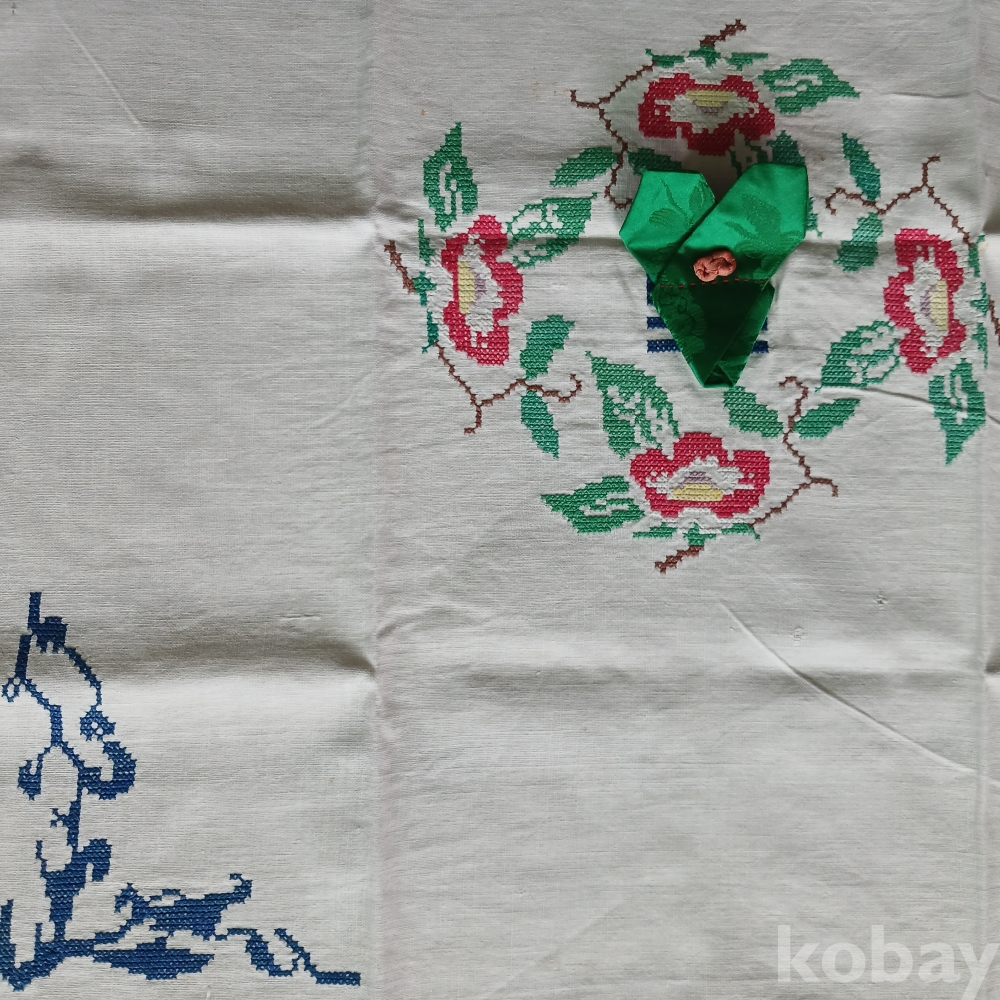 근대 십자수예 자수 상덥개 덮보 손수 실사용가능 튼실상태 섬유공예