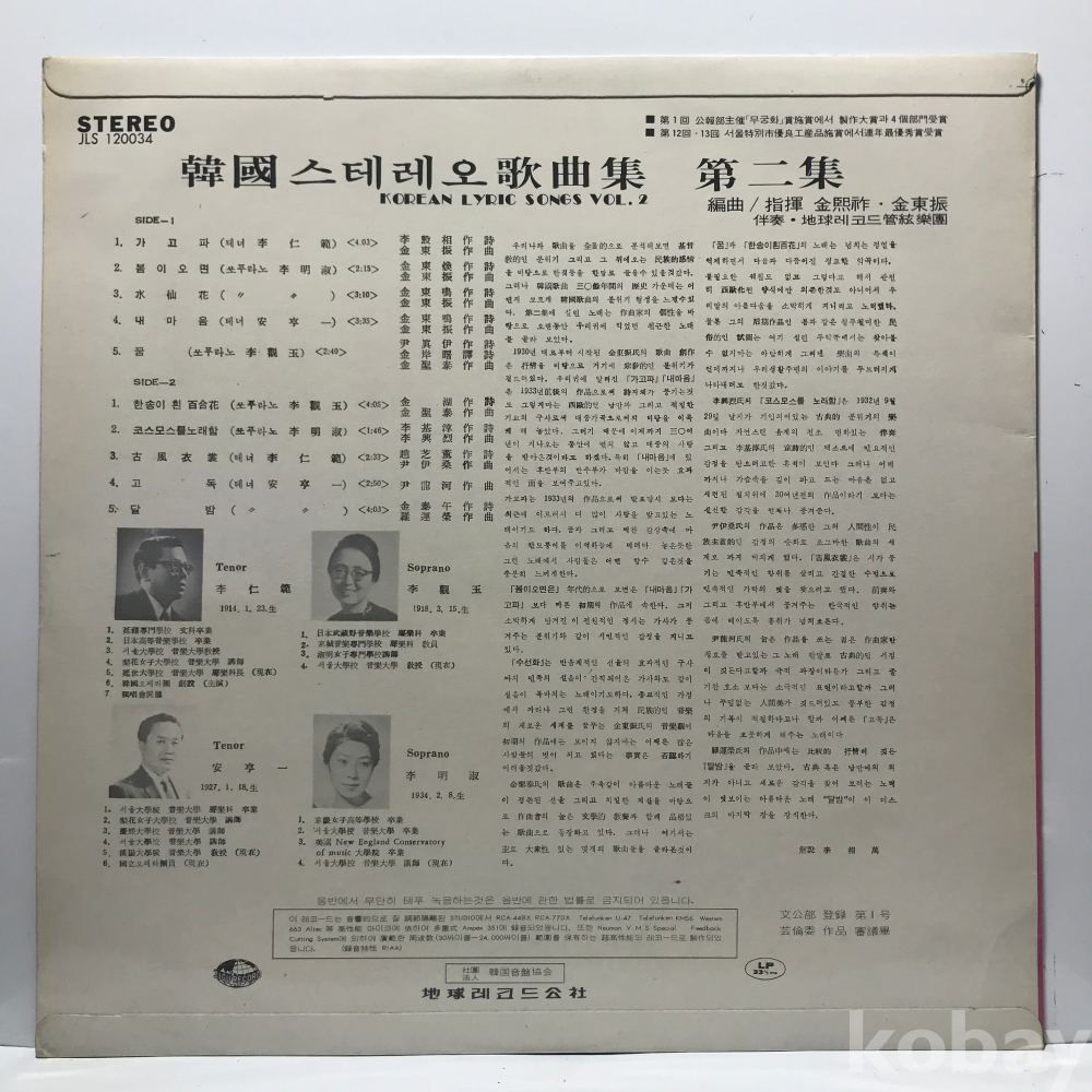 LP 34,910-47 한국 스테레오 가곡집 - 가고파 . ` 73 지구 자켓 EX+ 알판 EX