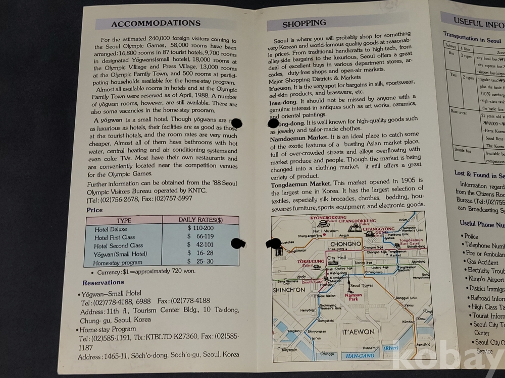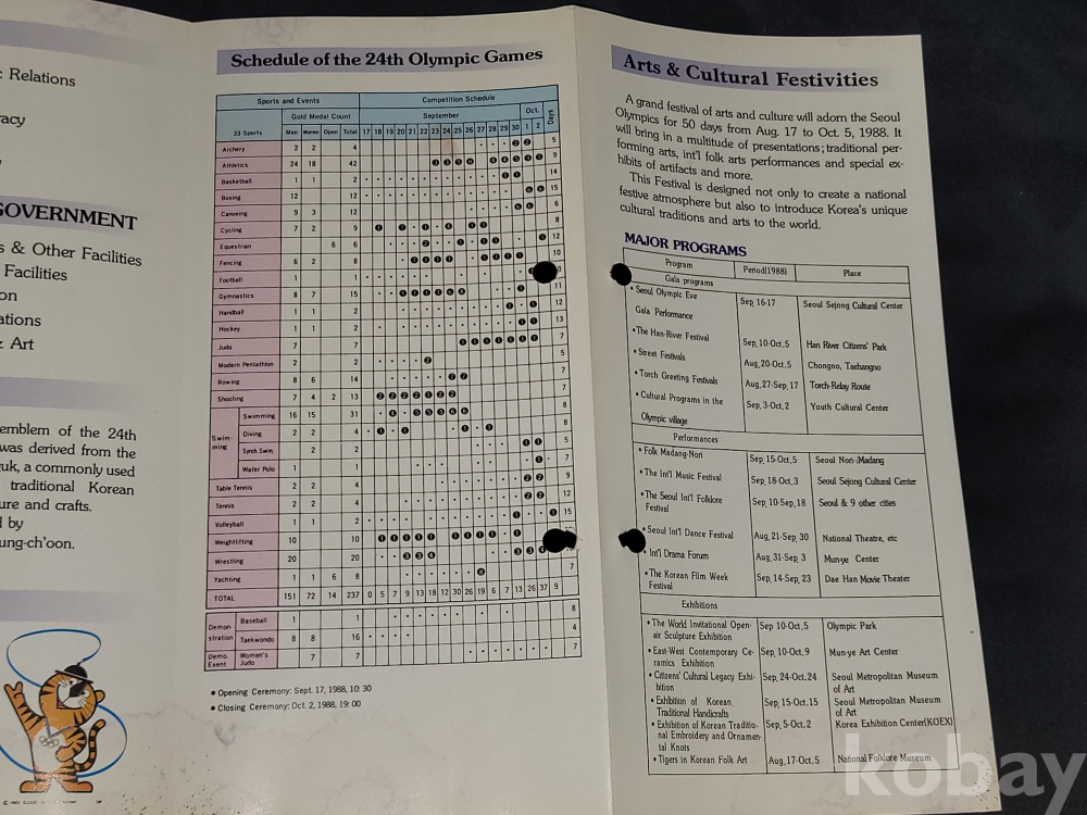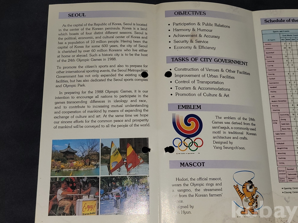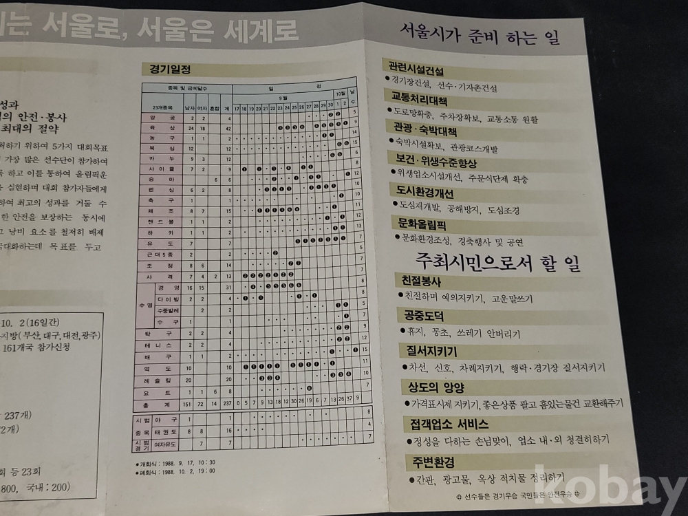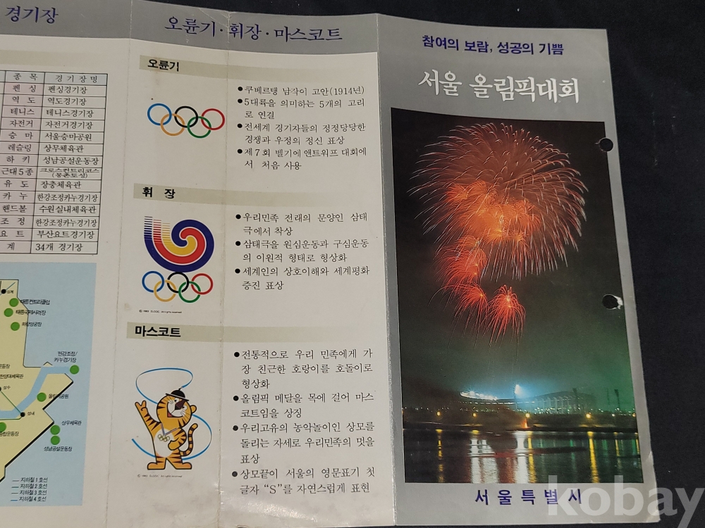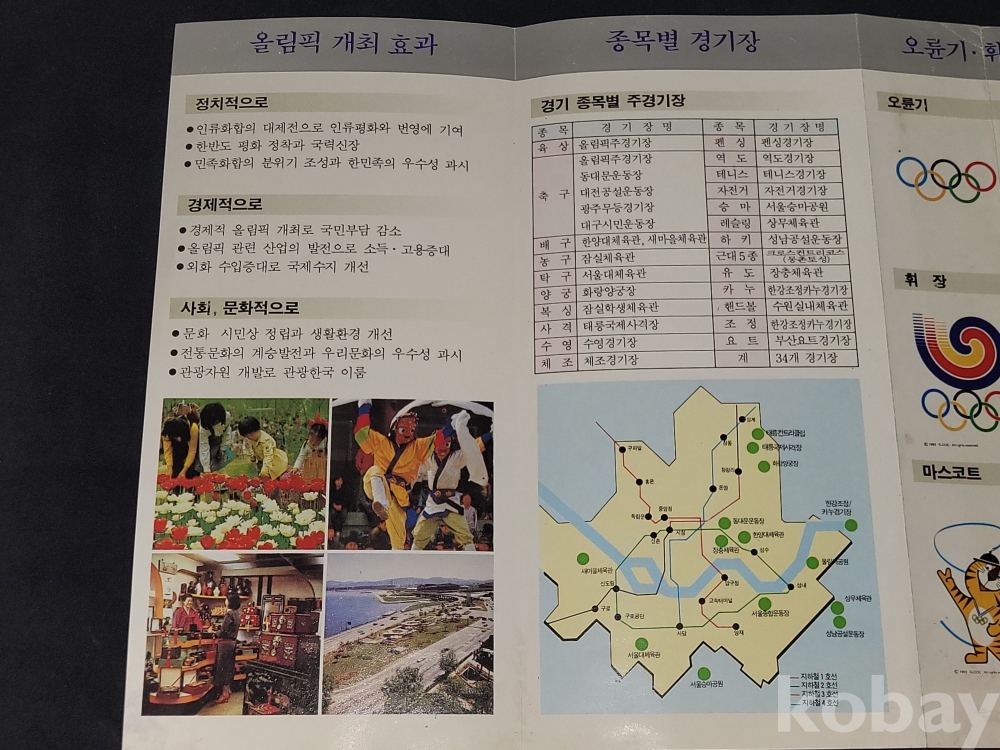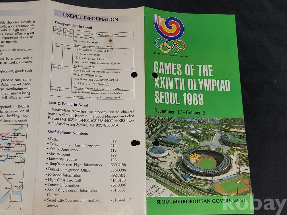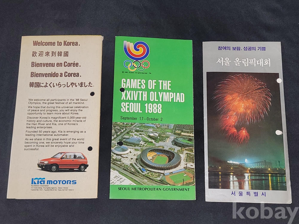 빈티지 세월 감이 느껴지는 희귀한 1988년 서울올림픽 관련 정보가 담긴 홍보 팸플릿, 책자 등 3종 일괄입니다.