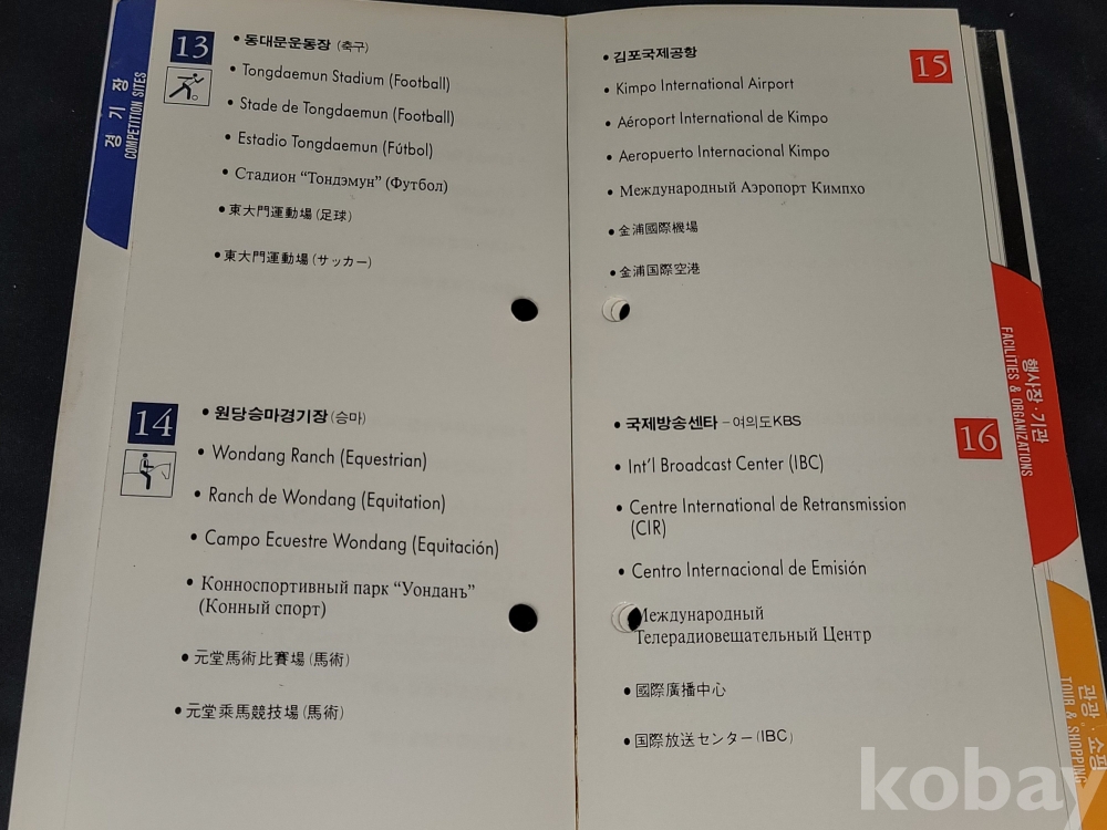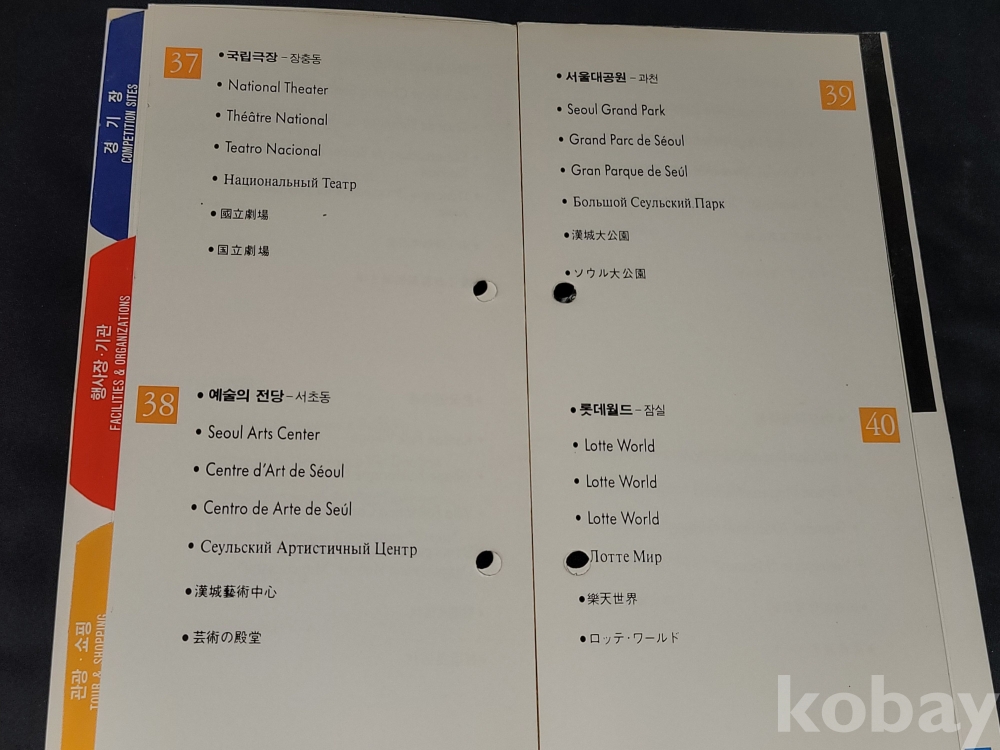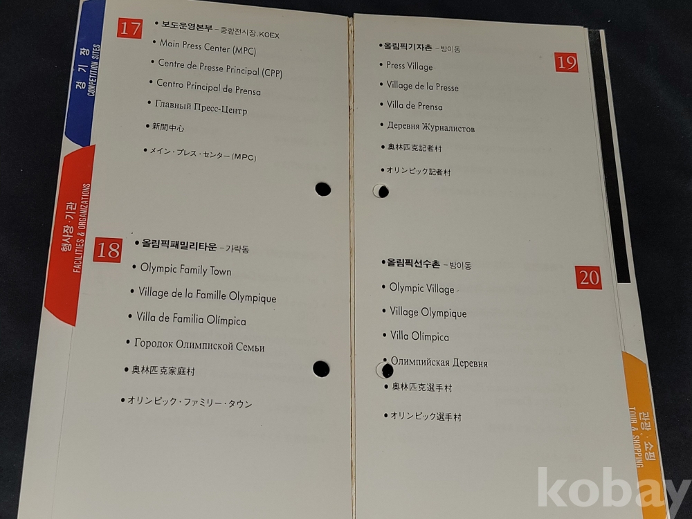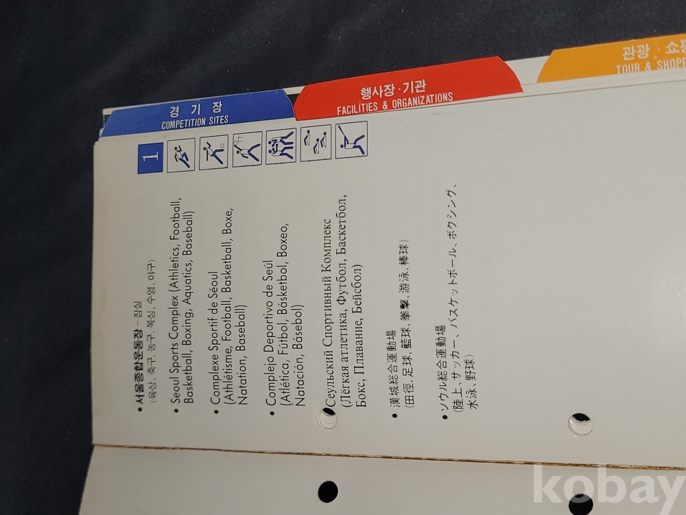 올림픽 정보 책자는 접착력이 약해져 분리되는 상태입니다.