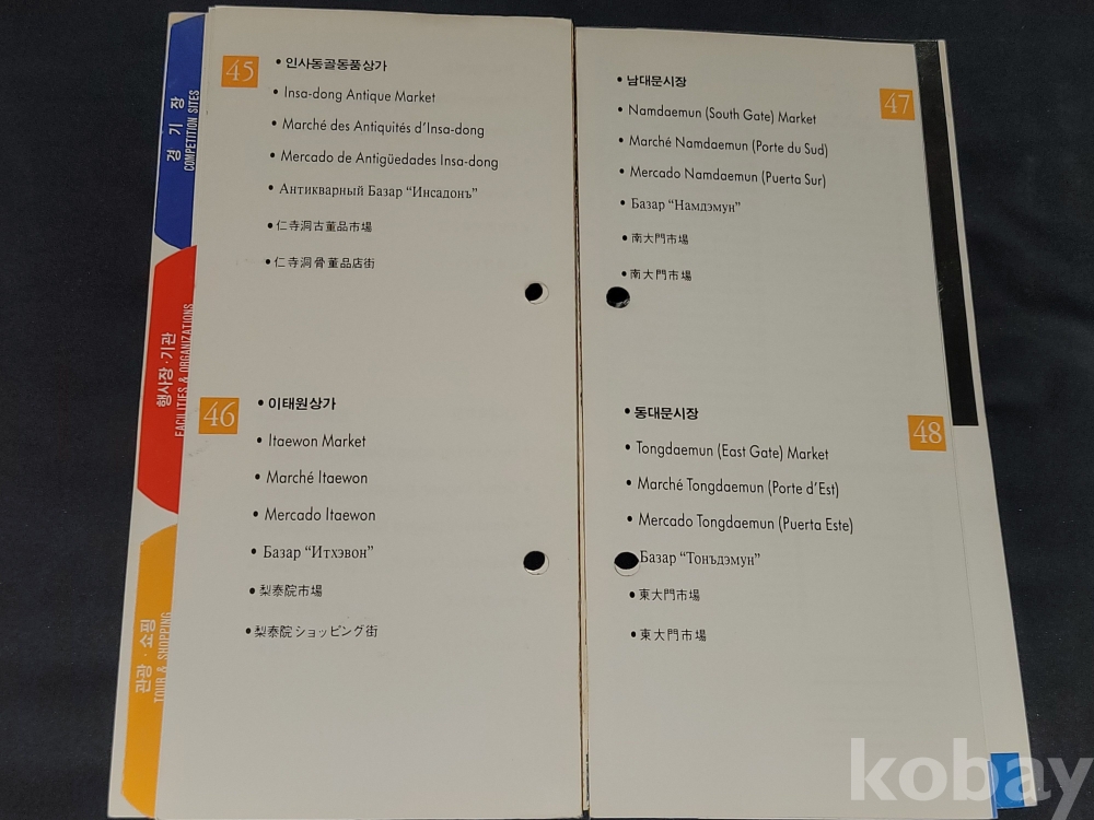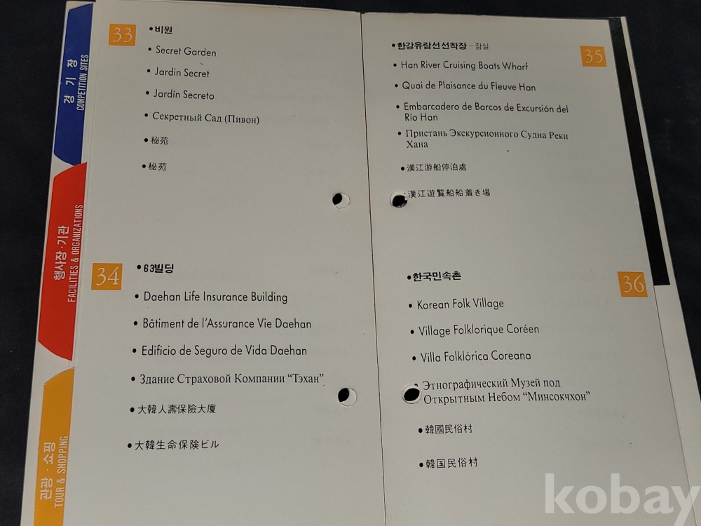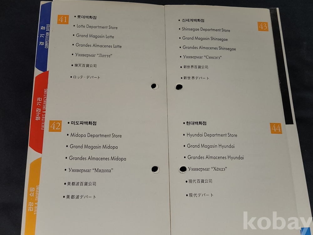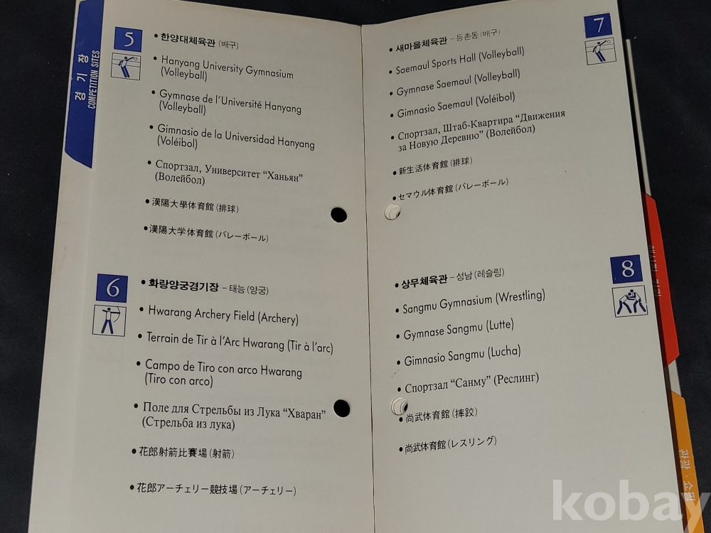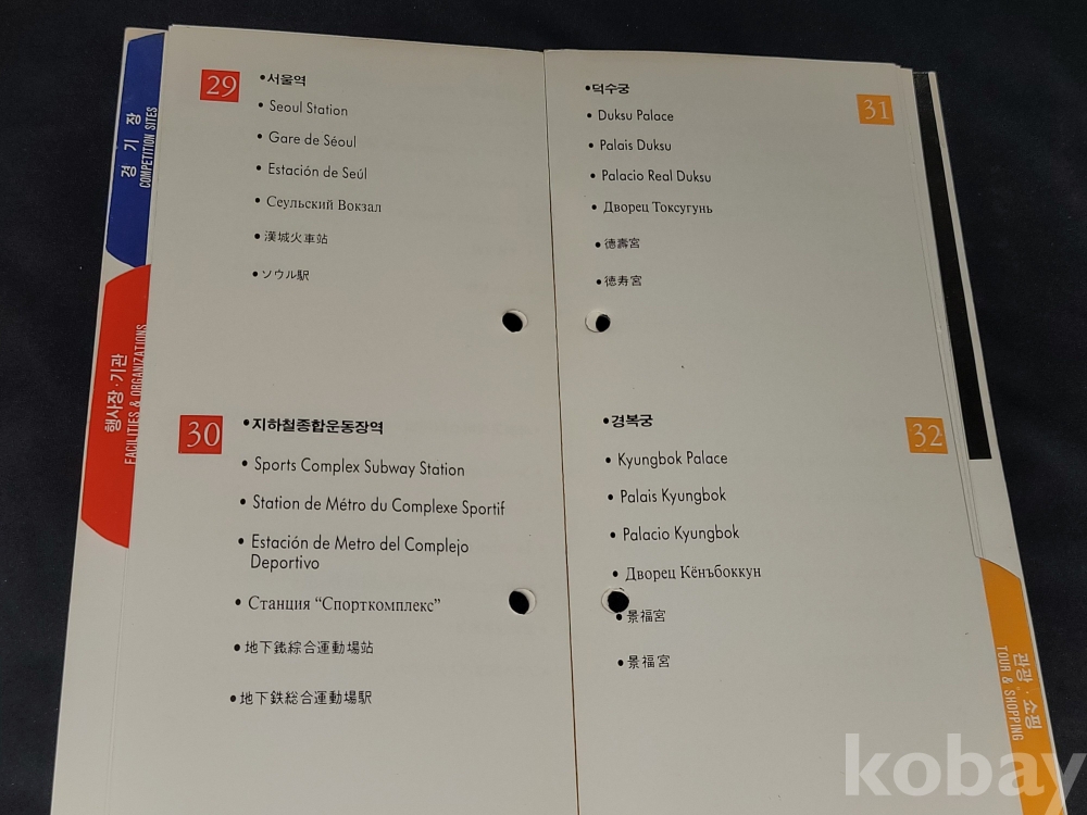 올림픽 정보 책자는 접착력이 약해져 분리되는 상태입니다.