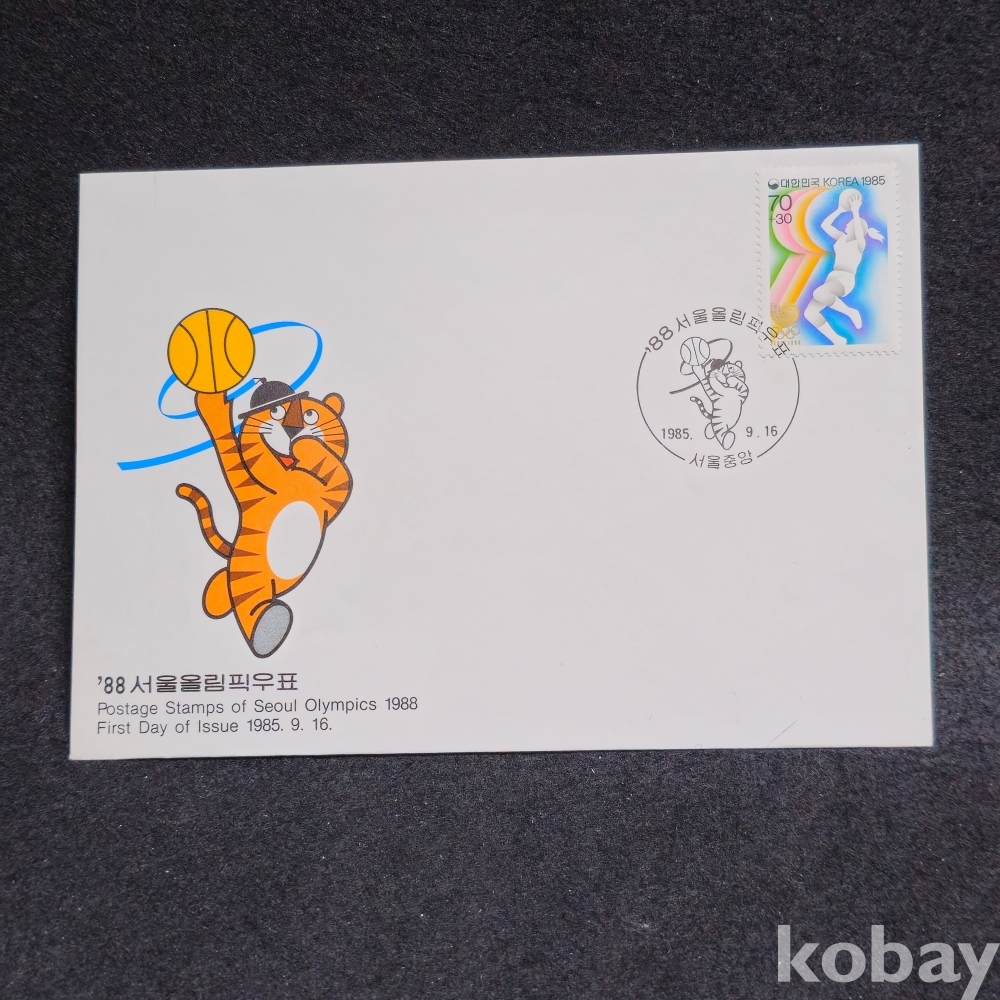 ​​​​(((올림픽자료/초일봉피))) 서울올림픽 호돌이 마스코트있는 서울중앙 초일봉피 (1985.9.16)