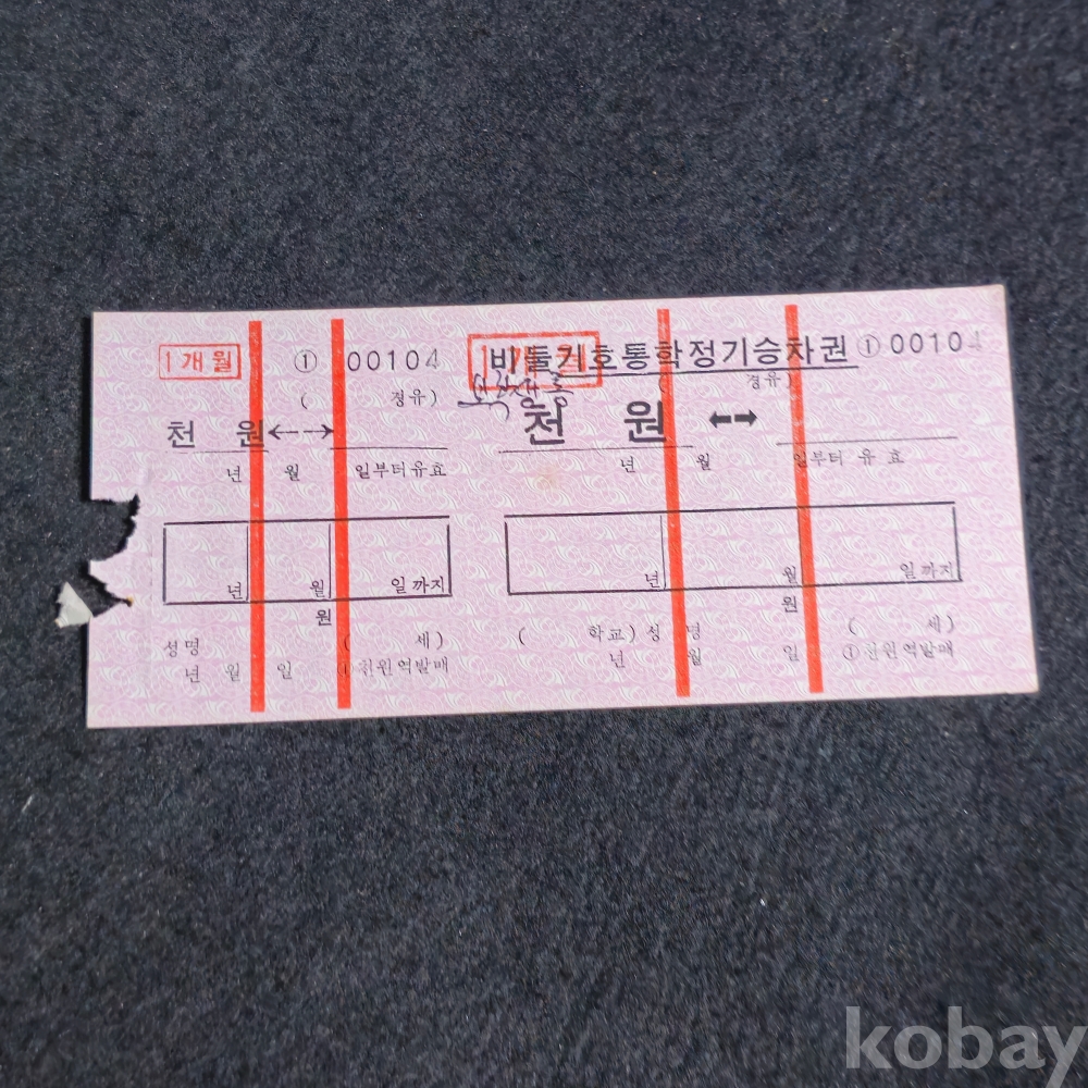 (천원경매) (((철도자료))) 오래전 비들기호 통학 정기승차권 (천원역발매) (1개월)